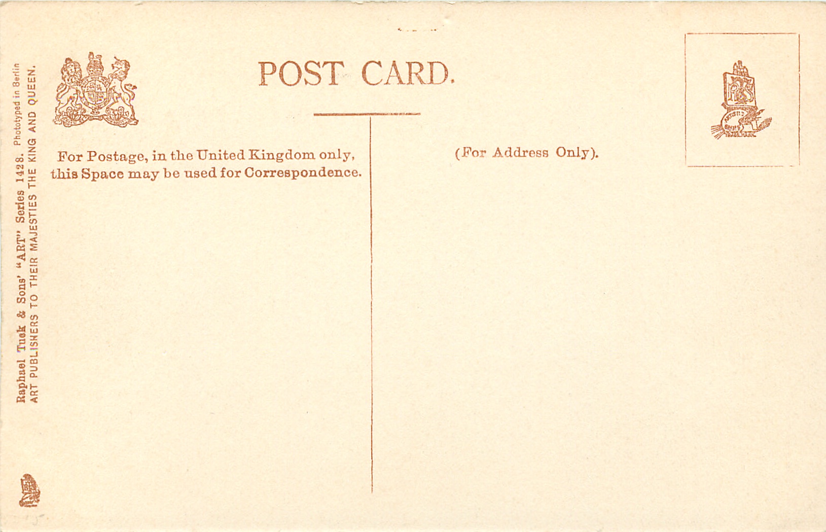 ART, PHOTOTYPED IN BERLIN, come hand-coloured, PRINTED BY GEORGE MORLAND., listed as BRITISH ART , 1904 POSTCARD Catalogue & as NATIONAL GALLERY in 1911/1912 Postcard Catalogue