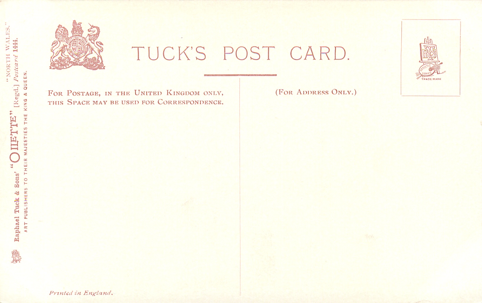 OILETTE, come with or w/o DESIGNED AND PRINTED IN ENGLAND or PRINTED IN ENGLAND, 5 backs, come with ARMS OF WALES gilt opt., listed in 1904 & 1908/1909 POSTCARD Catalogue