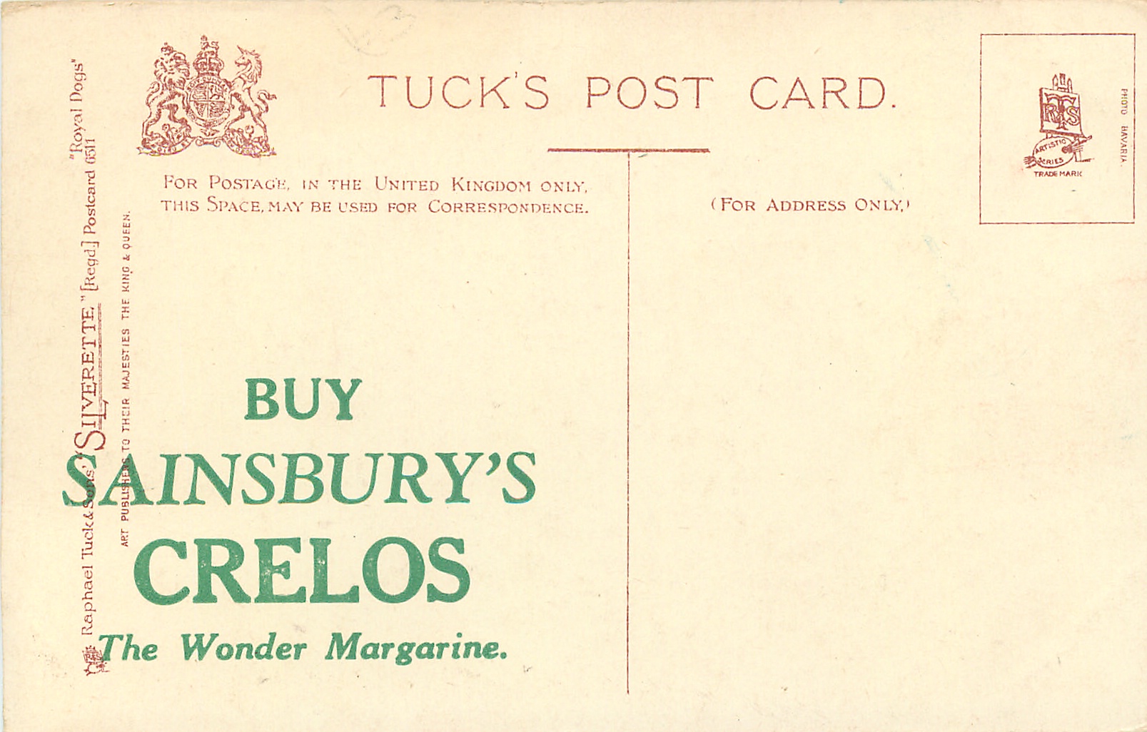 grey/black, PHOTOTYPED IN BERLIN, all photos by GAMBIER BOLTON, F.Z.S., same images 5124, 6511 & LONDON COUNTY COUNCIL REWARD CARD, come with back opt. IN GREEN BUY SAINSBURY'S CRELOS MARGARINE. , listed in 1904 POSTCARD Catalogue