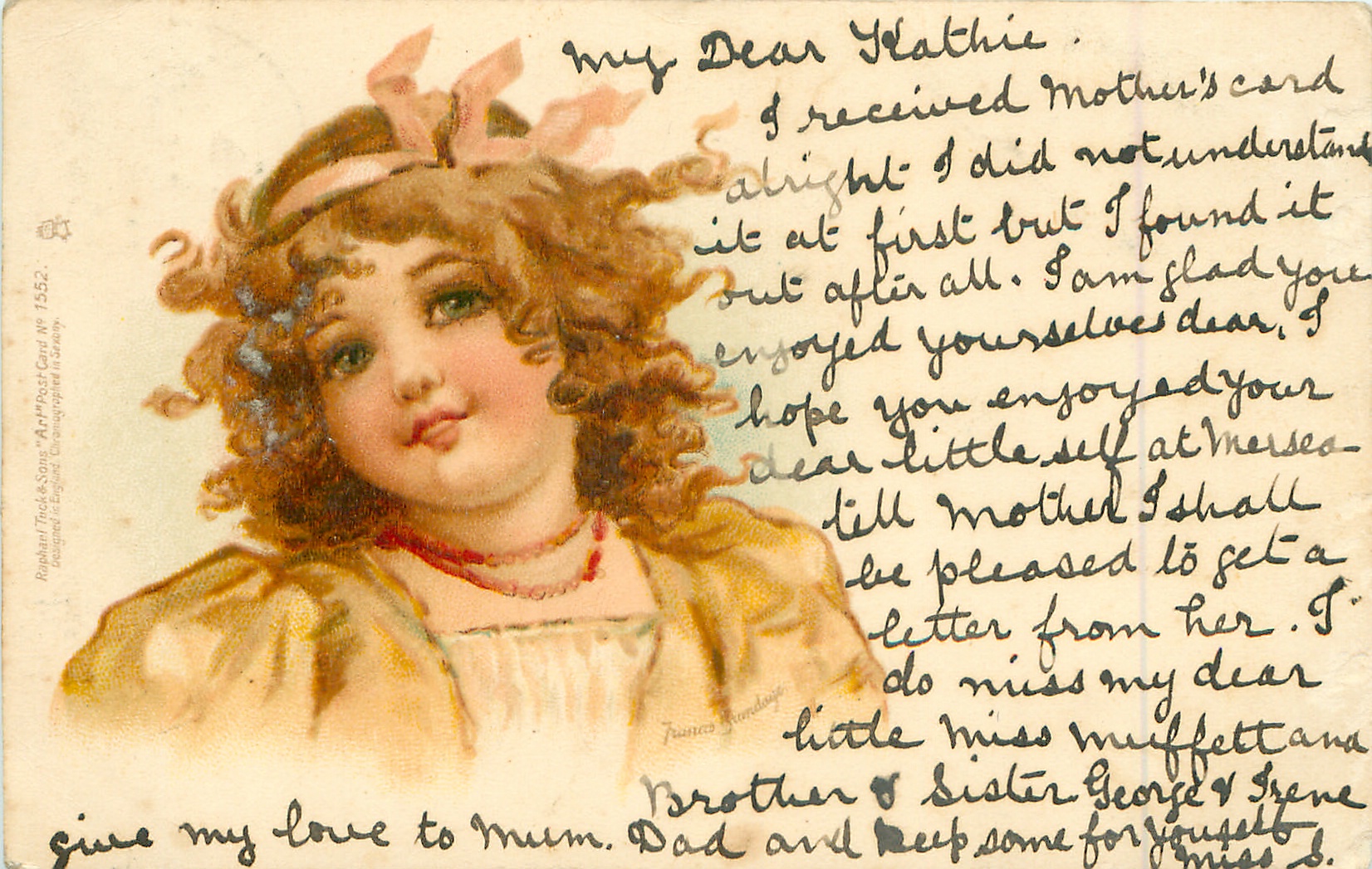 u/b, ART, DESIGNED IN ENGLAND, CHROMOGRAPHED IN SAXONY, come used as party invitation cards, listed in 1904 POSTCARD Catalogue