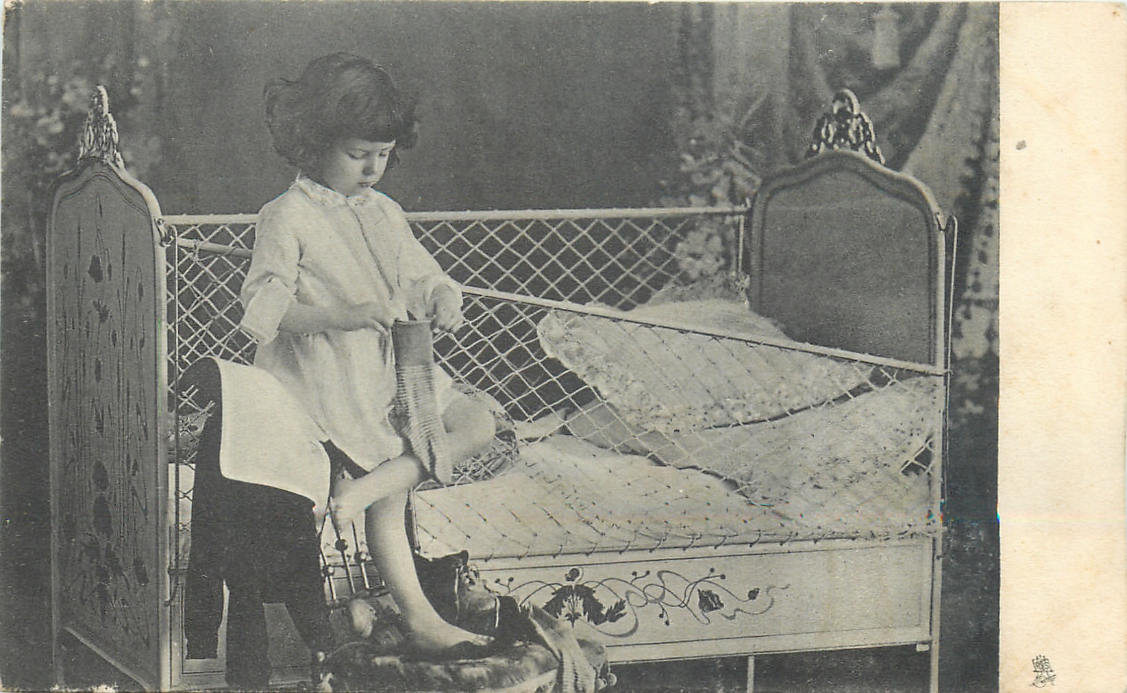 little girl out of her crib putting on socks and getting dressed