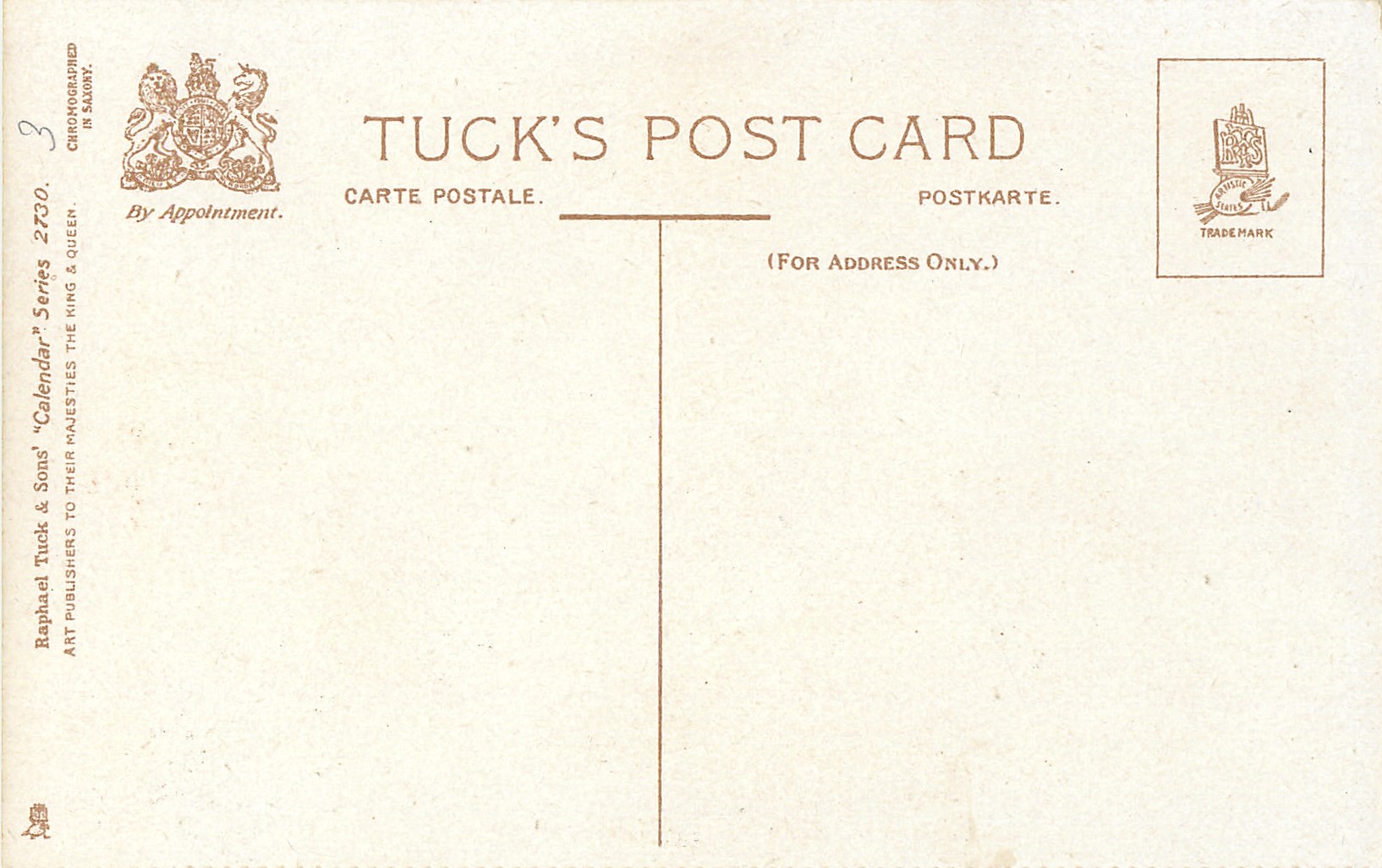 CALENDAR, perforated cards DESIGNED AT THE STUDIOS IN ENGLAND AND PRINTED AT THE FINE ART WORKS IN SAXONY., CHROMOGRAPHED IN SAXONY