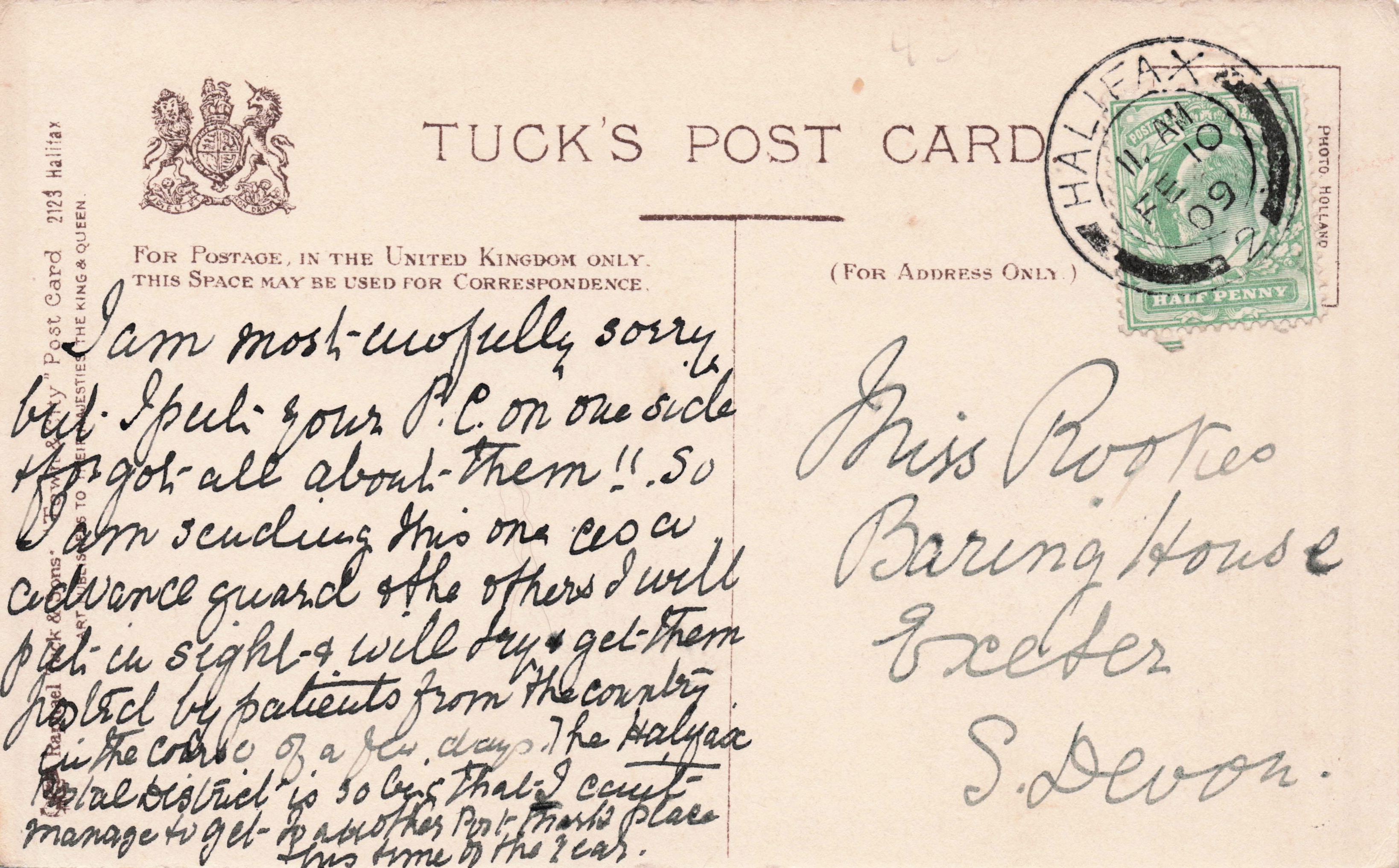 grey/black, TOWN & CITY, PHOTO HOLLAND (in stamp box), come with Halifax Coat of Arms in red. listed in RAPHAEL TUCK & SONS' LD. CHRISTMAS & NEW YEAR 1904/1905 catalogue