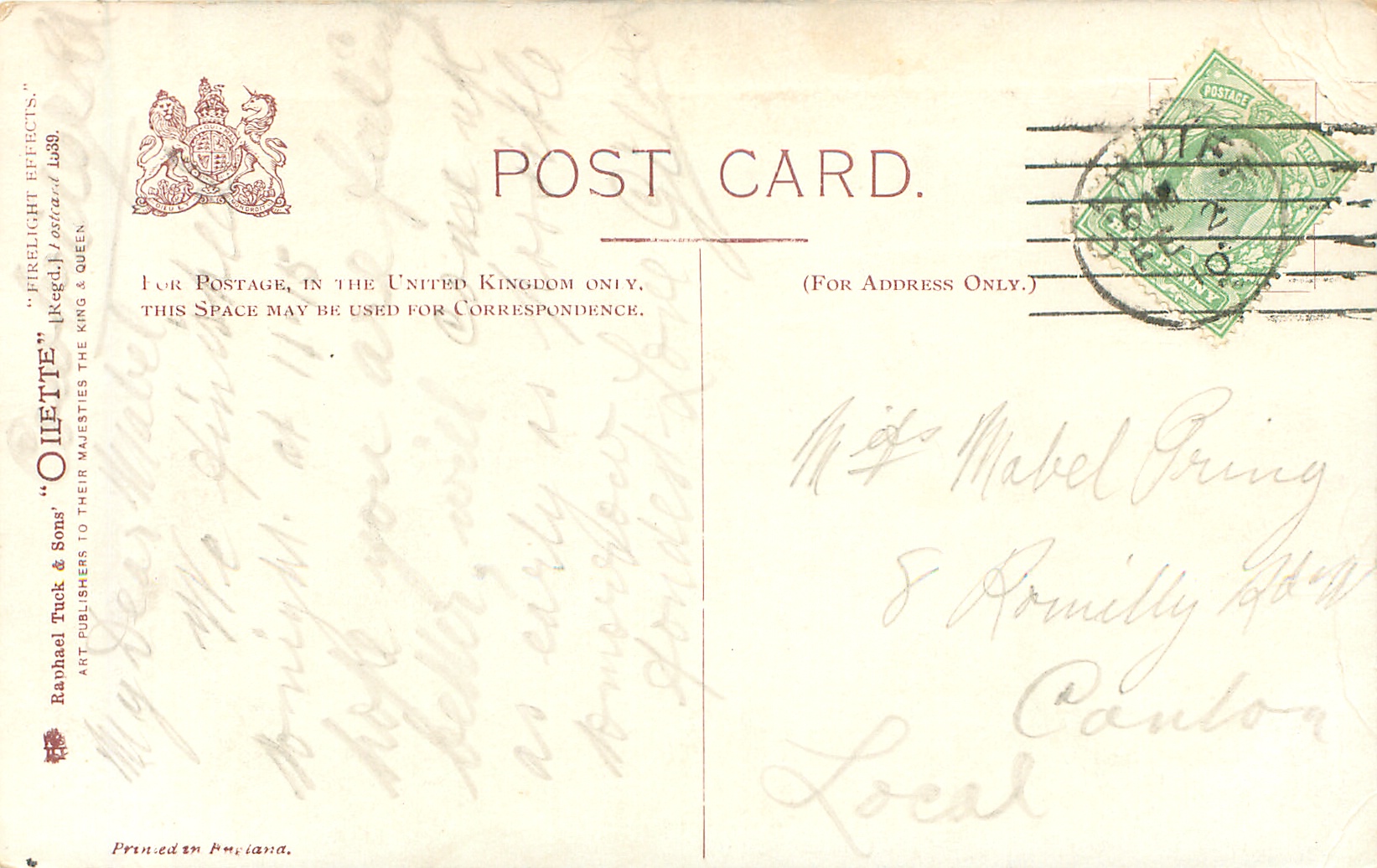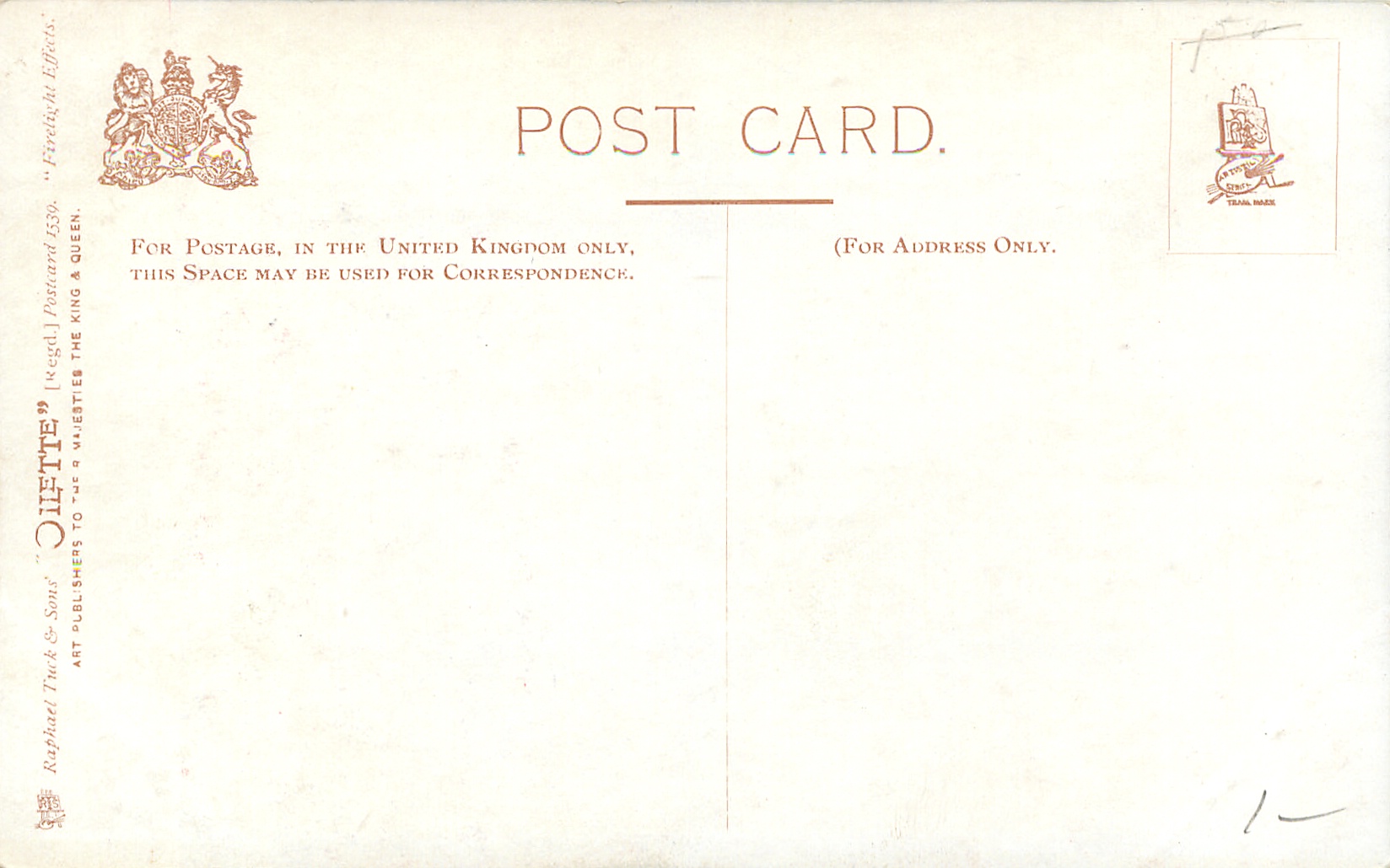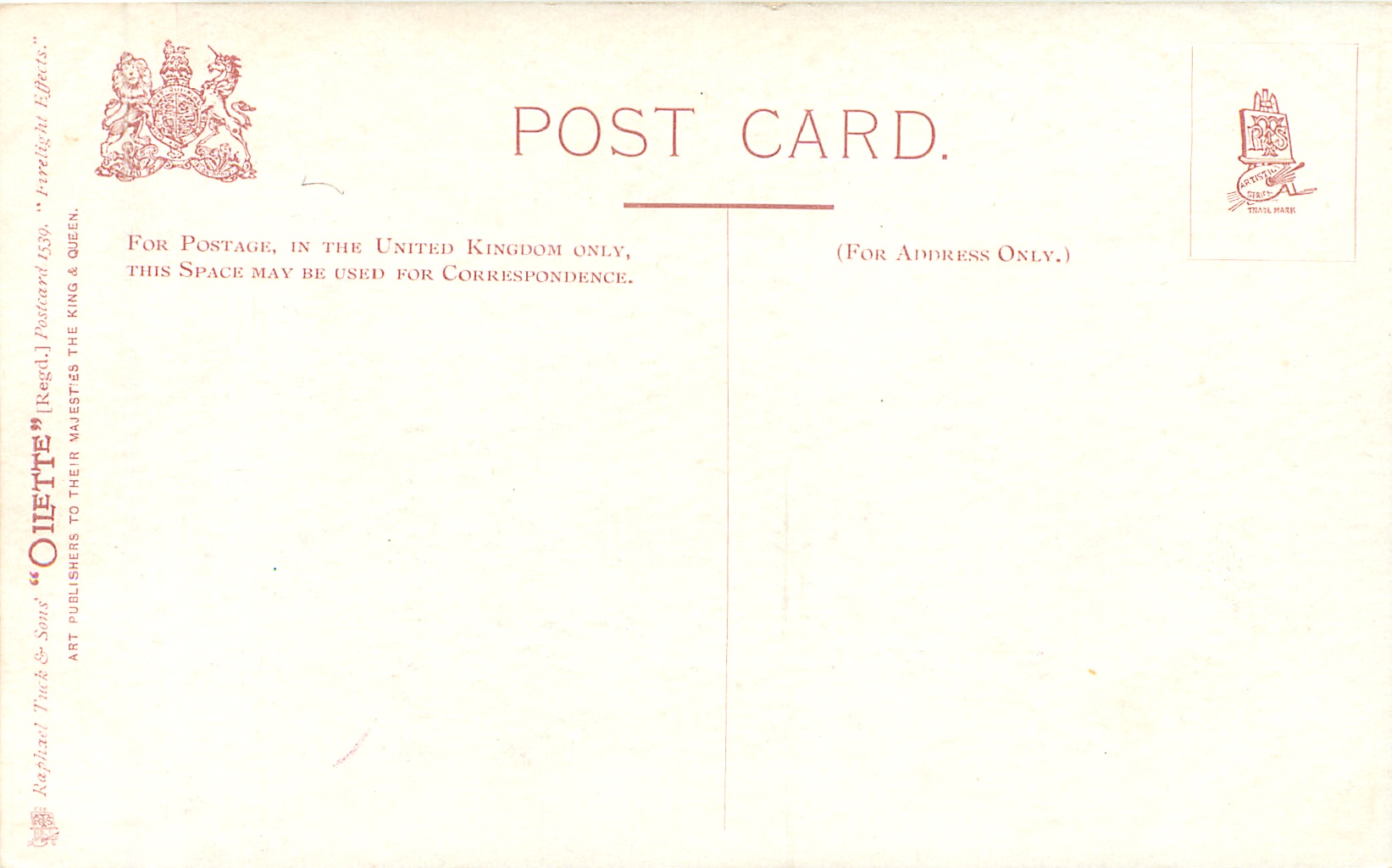 OILETTE, listed in 1904 & 1908/1909(USA) & 1911/1912 & 1913/1914 POSTCARD Catalogues, with or w/o PRINTED IN ENGLAND or DESIGNED AND PRINTED IN ENGLAND, same images, French backs SERIE 381
