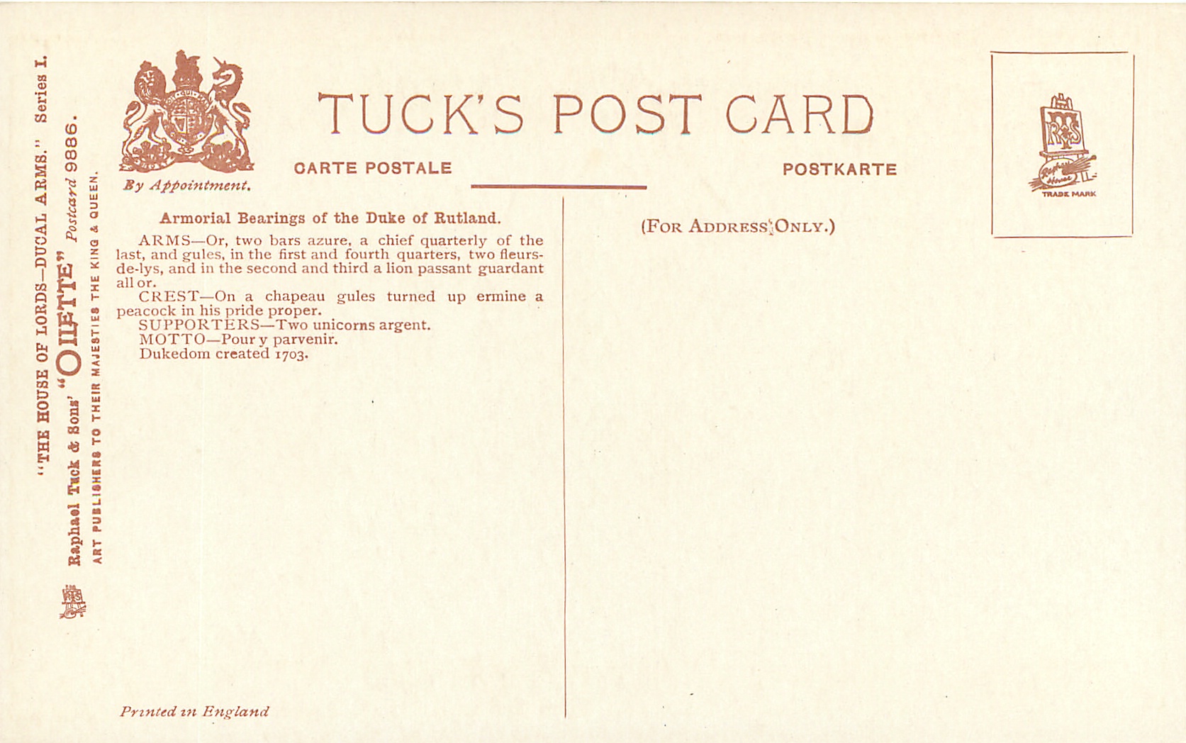 THE HOUSE OF LORDS-DUCAL ARMS SERIES I