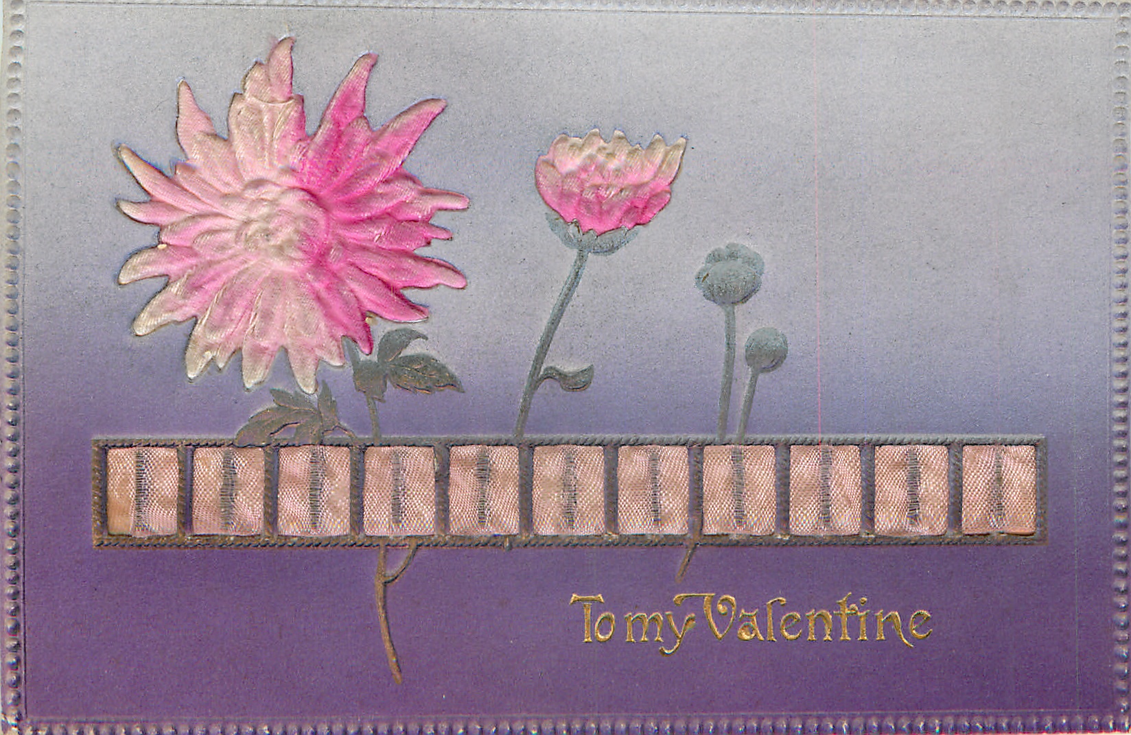 TO MY VALENTINE large & small pink chrysanthemums & rwo buds, pink ribbon