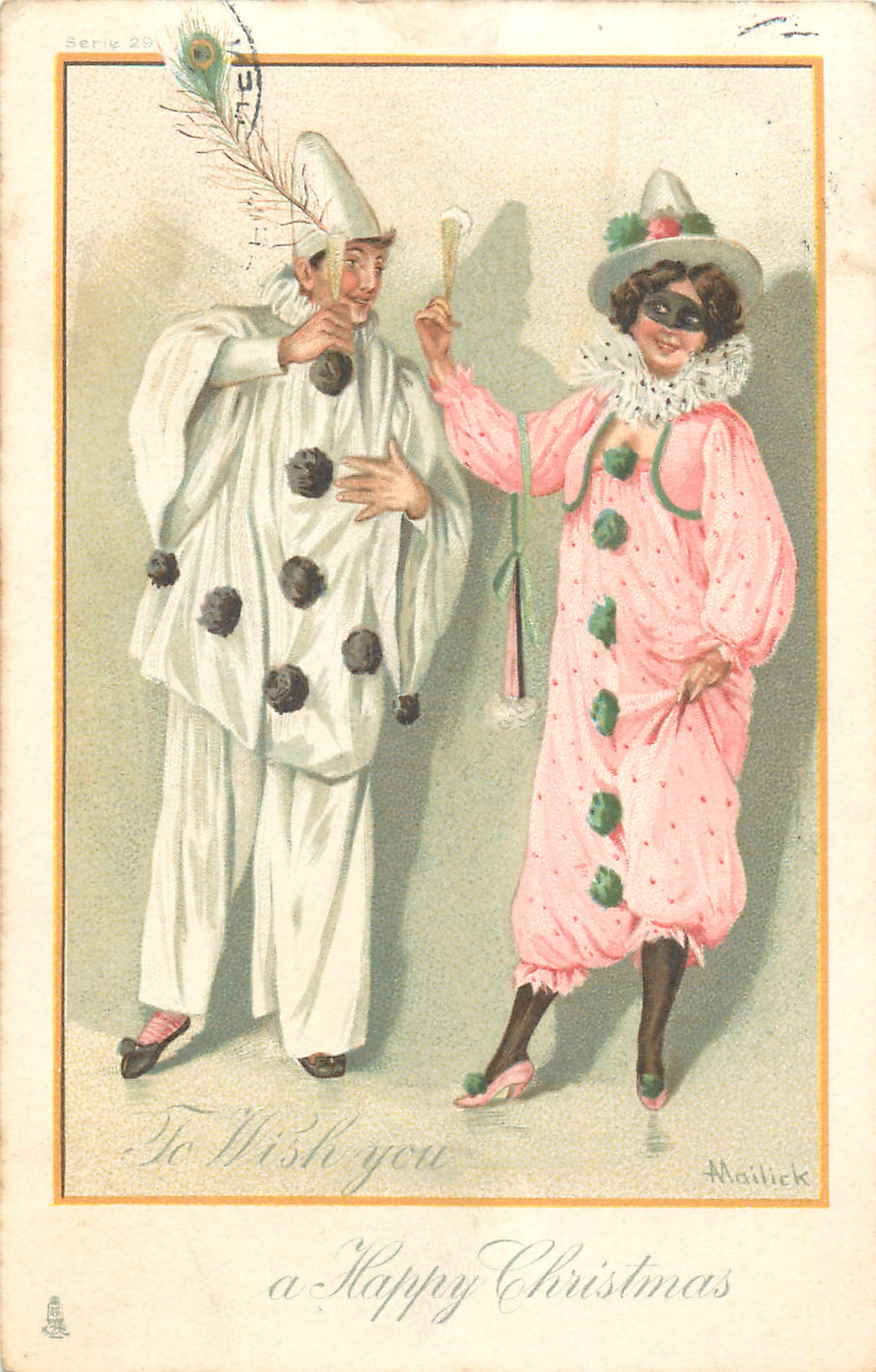 TO WISH YOU A HAPPY CHRISTMAS Pierrot & Pierrette stand & toast each other