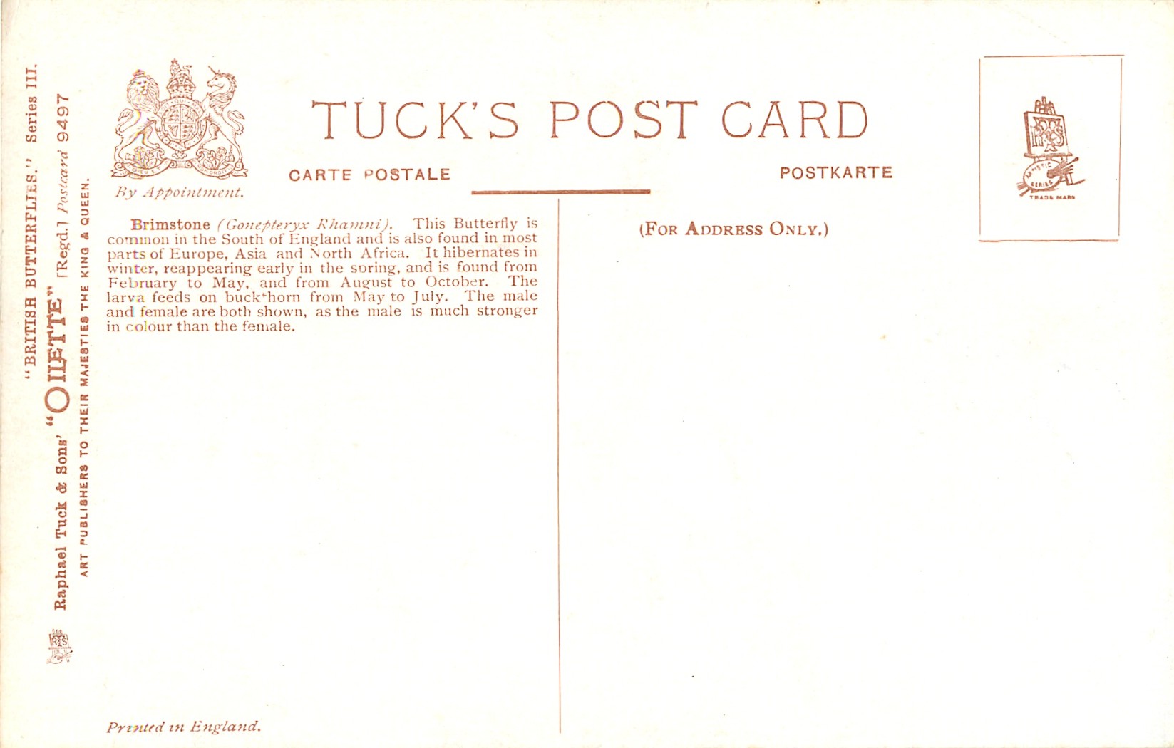 OILETTE. PRINTED IN ENGLAND, listed in 1908/1909 & 1911/1912 & 1912/1913 & 1912/1913 POSTCARD Catalogue