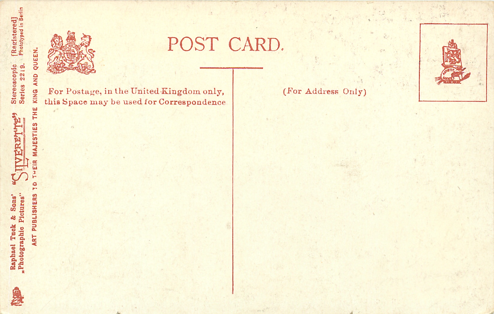 shades of deep purple, STEREOSCOPIC, PHOTOTYPED IN BERLIN, listed in 1904 POSTCARD Catalogue