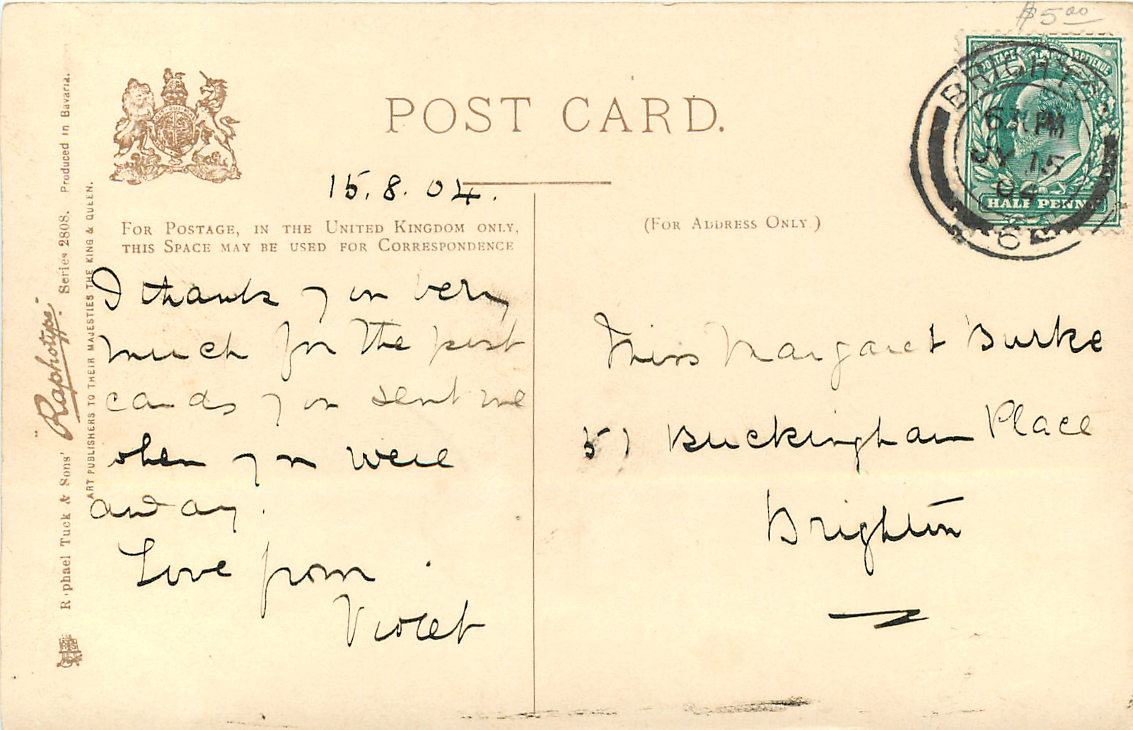 grey-green or sepia, RAPHOTYPE, 2 backs, PRODUCED or PHOTOTYPED IN BAVARIA (in stamp[ box), same images 2908, PAINTED BY H. HORWITZ., listed in 1904 POSTCARD Catalogue