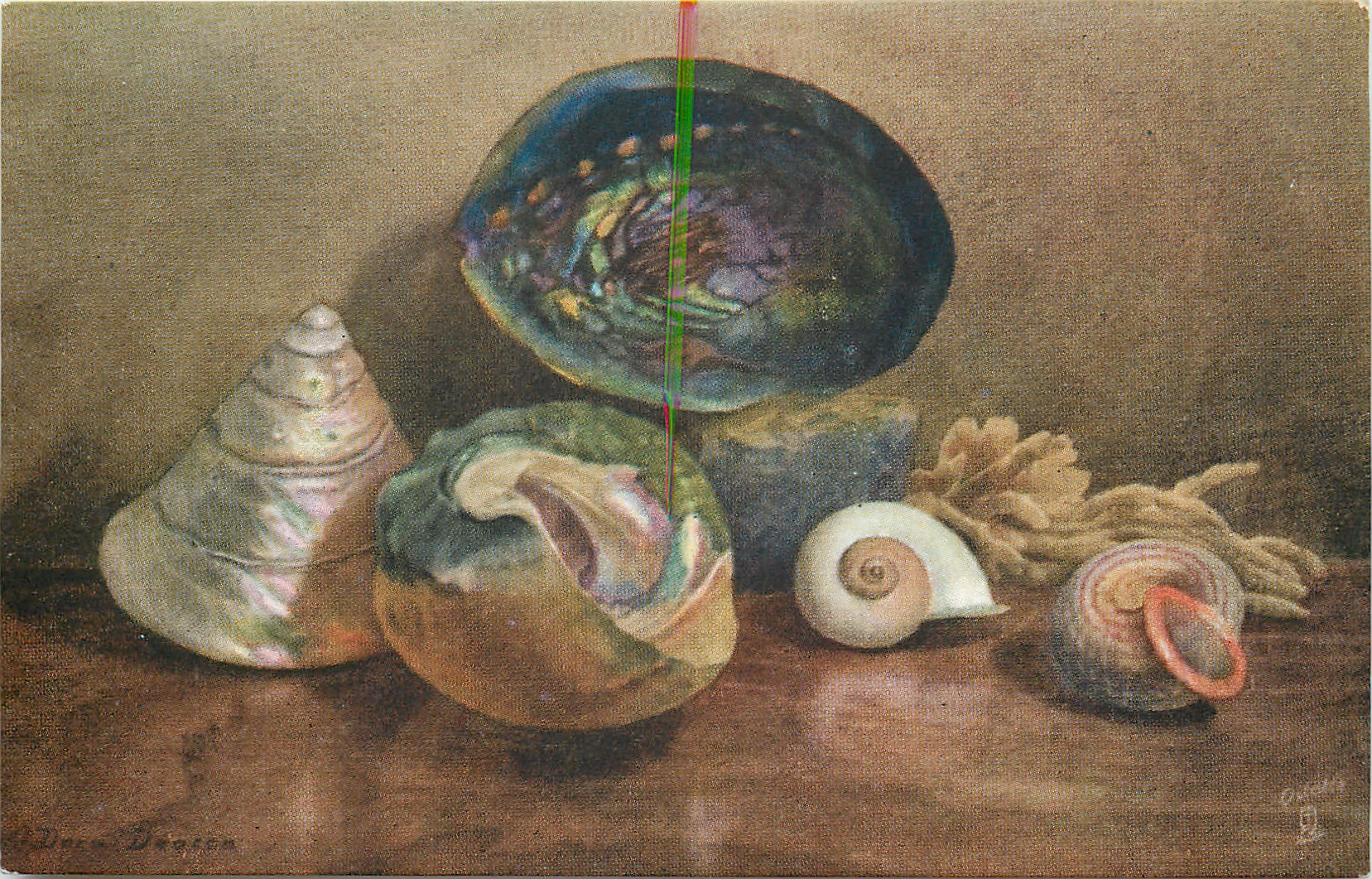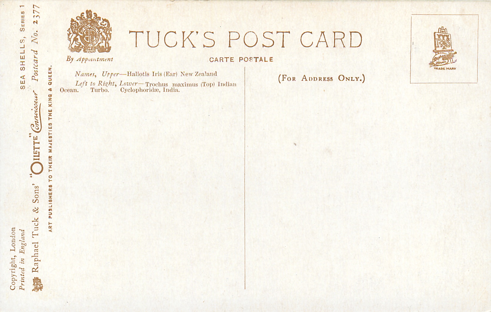 back NAMES, UPPER - HALIOTIS IRIS (EAR) NEW ZEALAND, LEFT TO RIGHT, LOWER - TROCHUS MAXIMUS (TOP) INDIAN OCEAN. TURBO. CYCLOPHORIDAE, INDIA.