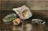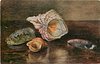 back UPPER - HIPPOPUS MACULATUS LINNAEUS (BI-VALVE), EASTERN SEAS. NAMES LEFT TO RIGHT - HALIOTIS IRIS (EAR) NEW ZEALAND. BUCCINUM UNDATUM (WHELK) BRITAIN. MYTILUS EDULIS (MUSSEL) BRITAIN.