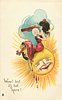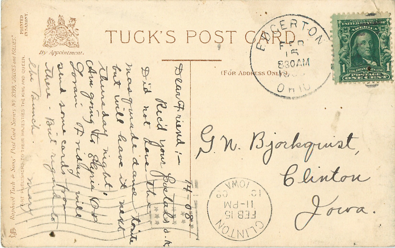 CHROMOGRAPHED IN SAXONY (in stamp box) or PRINTED IN SAXONY, come with & w/o narrow straw coloured border, listed in postcard catalogue 1908(USA)