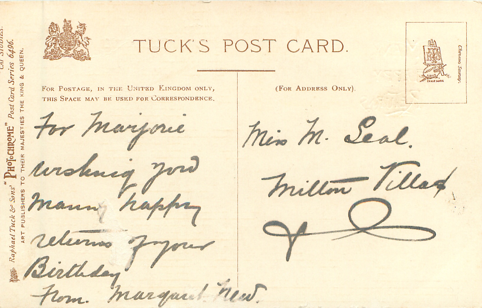 PHOTOCHROME, come CHROMOTYPED, listed in 1908/1909 & 1911/1912 & 1913/1914 Postcard Catalogues, or CHROMO SAXONY, 6 backs, most of these images come with French backs & titles, SERIE 252 & 409, made in SAXONY or PHOTOCHROMED IN SAXONY (in stamp box),come in ART sets 862-865 & REAL PHOTOGRAPH 5089/93 & 7006/7007 SAPPHIRE