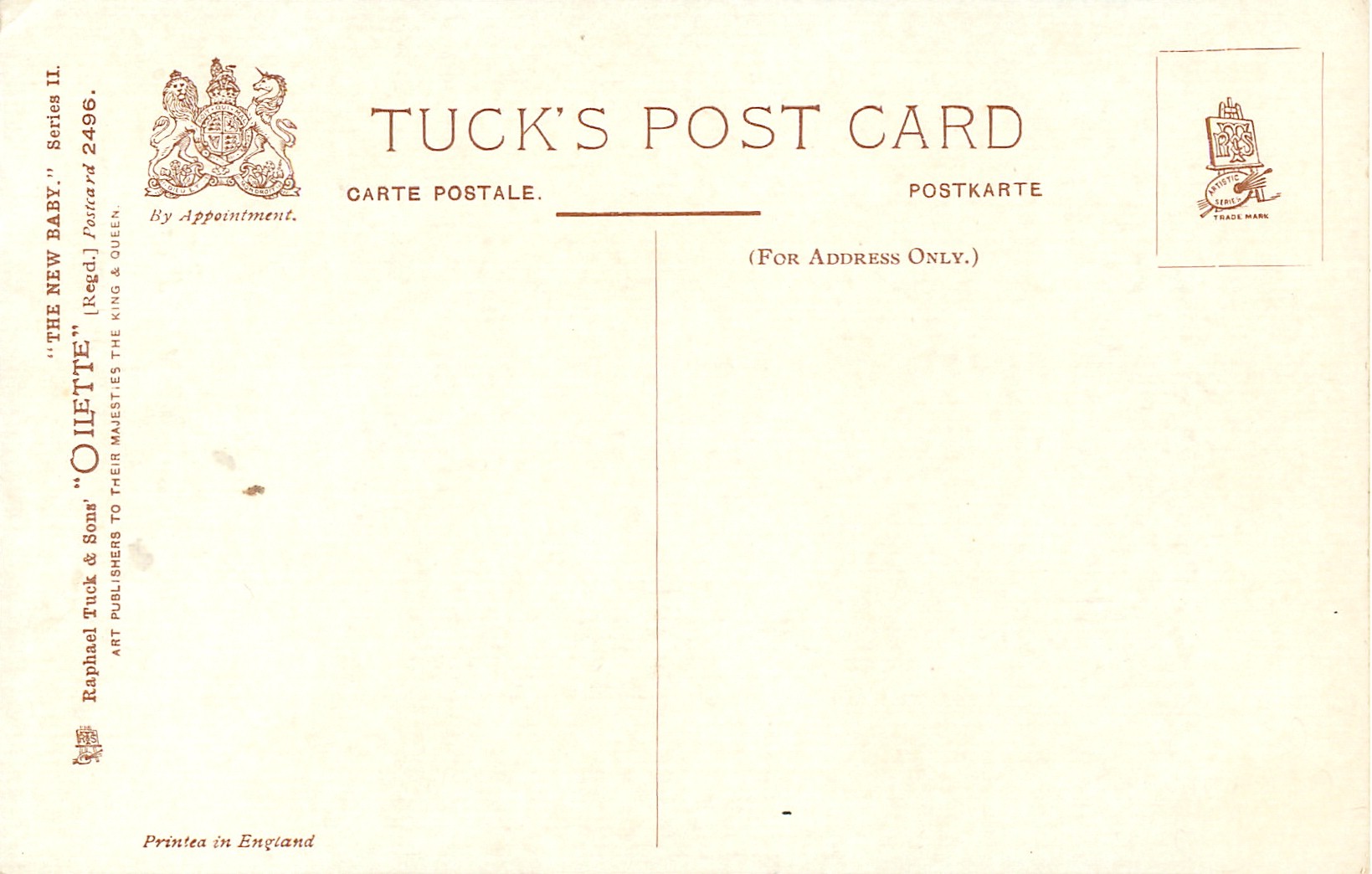 OILETTE, PRINTED IN ENGLAND, same images German backs & inscriptions OILETTE 484B, French backs SERIE 977 P LE NOUVEAU BEBE