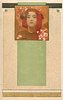 inset of woman's head & shoulders, red hair,corsage of flowers green oblong below, sand coloured background