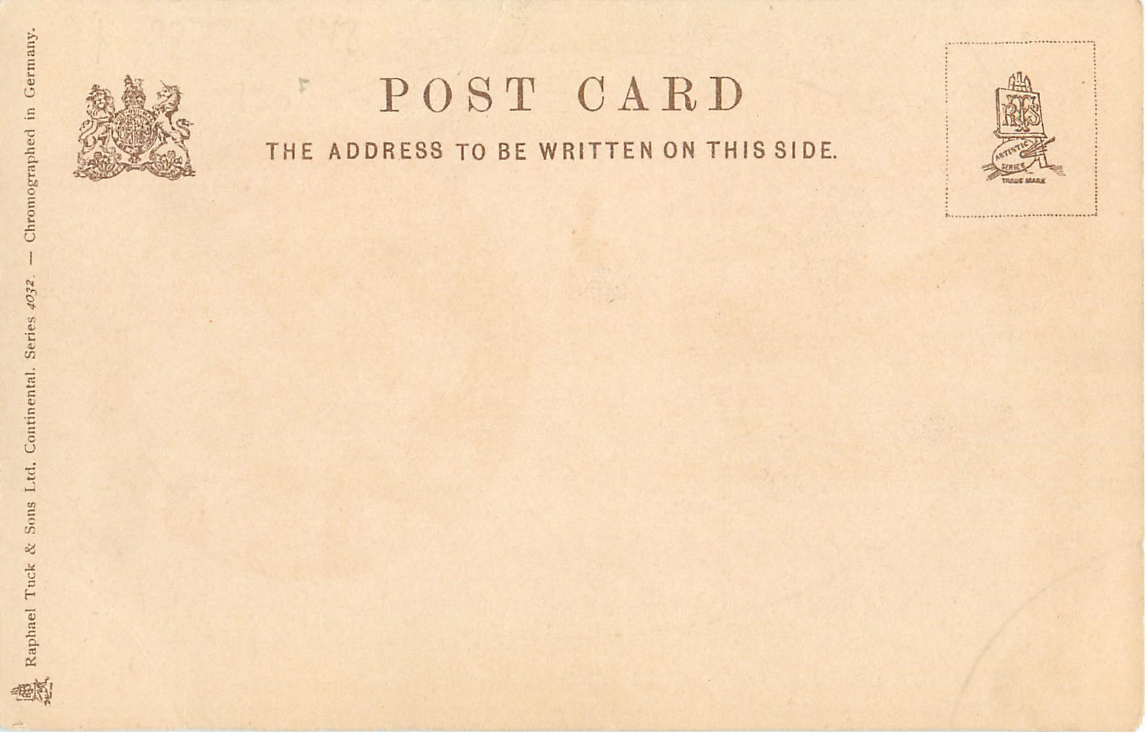 u/b, CONTINENTAL, CHROMOGRAPHED IN GERMANY,, listed in 1904 POSTCARD Catalogue, same images French back in SERIE 162
