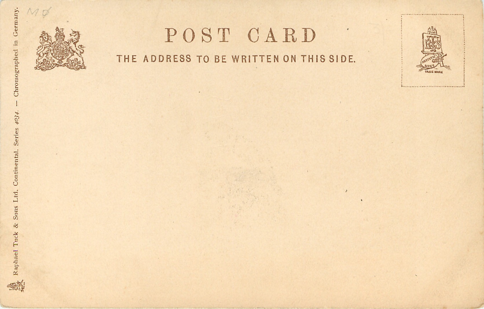 CONTINENTAL, CHROMOGRAPHED IN GERMANY, u/b, listed in 1904 POSTCARD Catalogue
