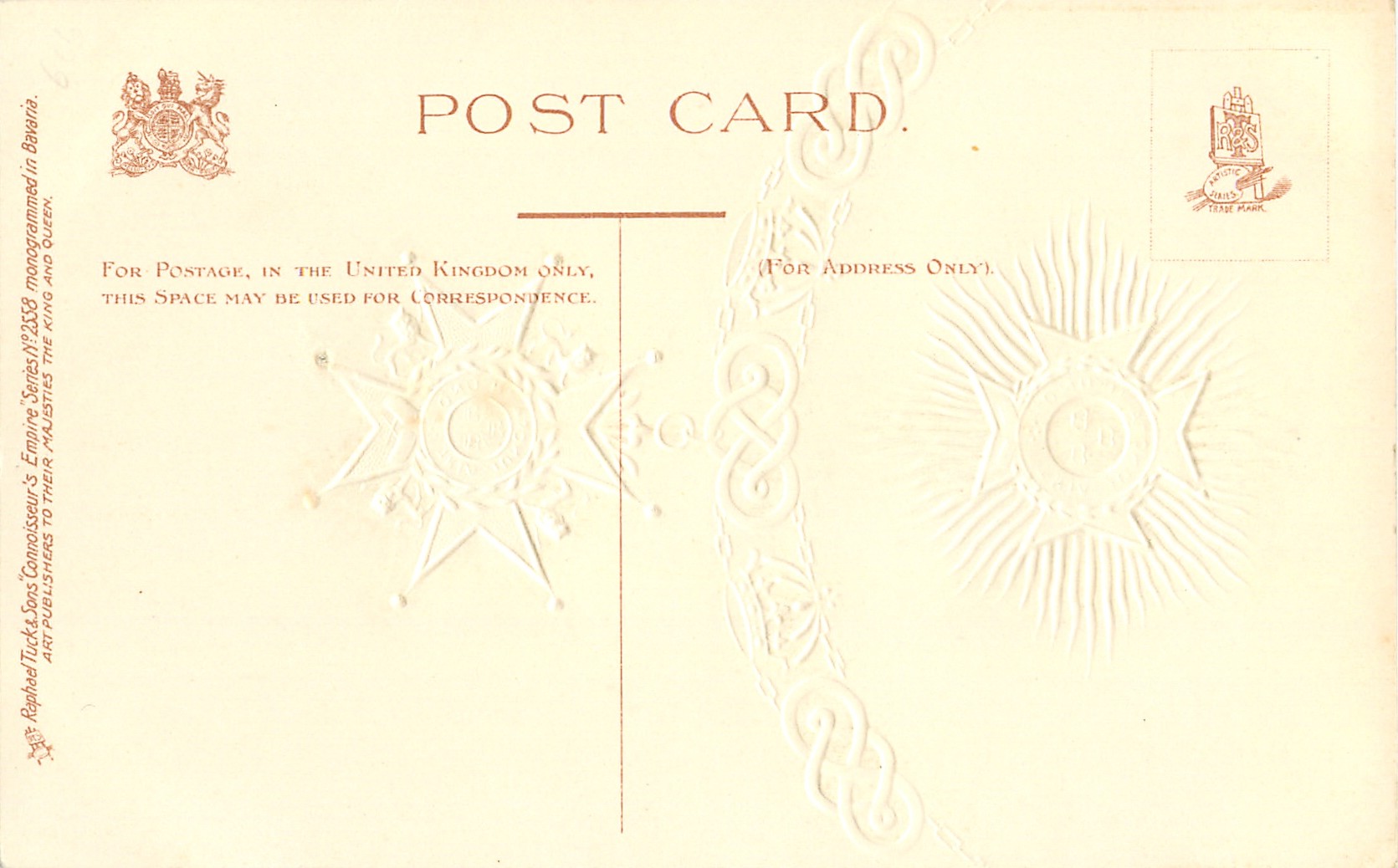 CONNOISSEUR'S EMPIRE, gilt embossed, MONOGRAMMED IN BAVARIA, listed in 1904 POSTCARD Catalogue