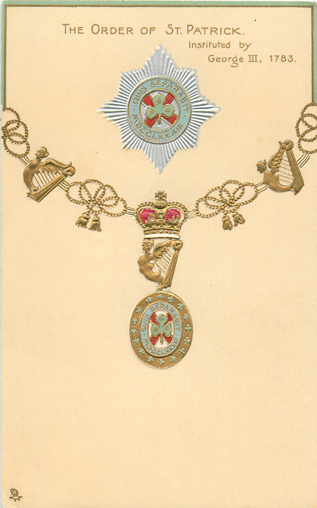 THE ORDER OF ST. PATRICK. INSTITUTED BY GEORGE III, 1783 shamrock on badge