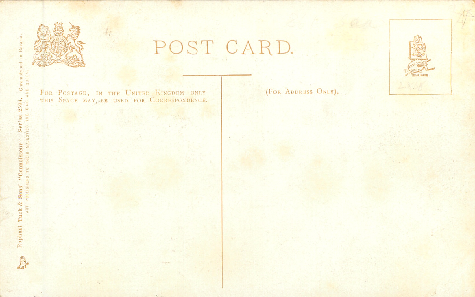 CONNOISSEUR, same images French backs SERIE 394, CHROMOTYPED IN BAVARIA, listed as TURNERESQUE SERIES in 1904 POSTCARD Catalogue