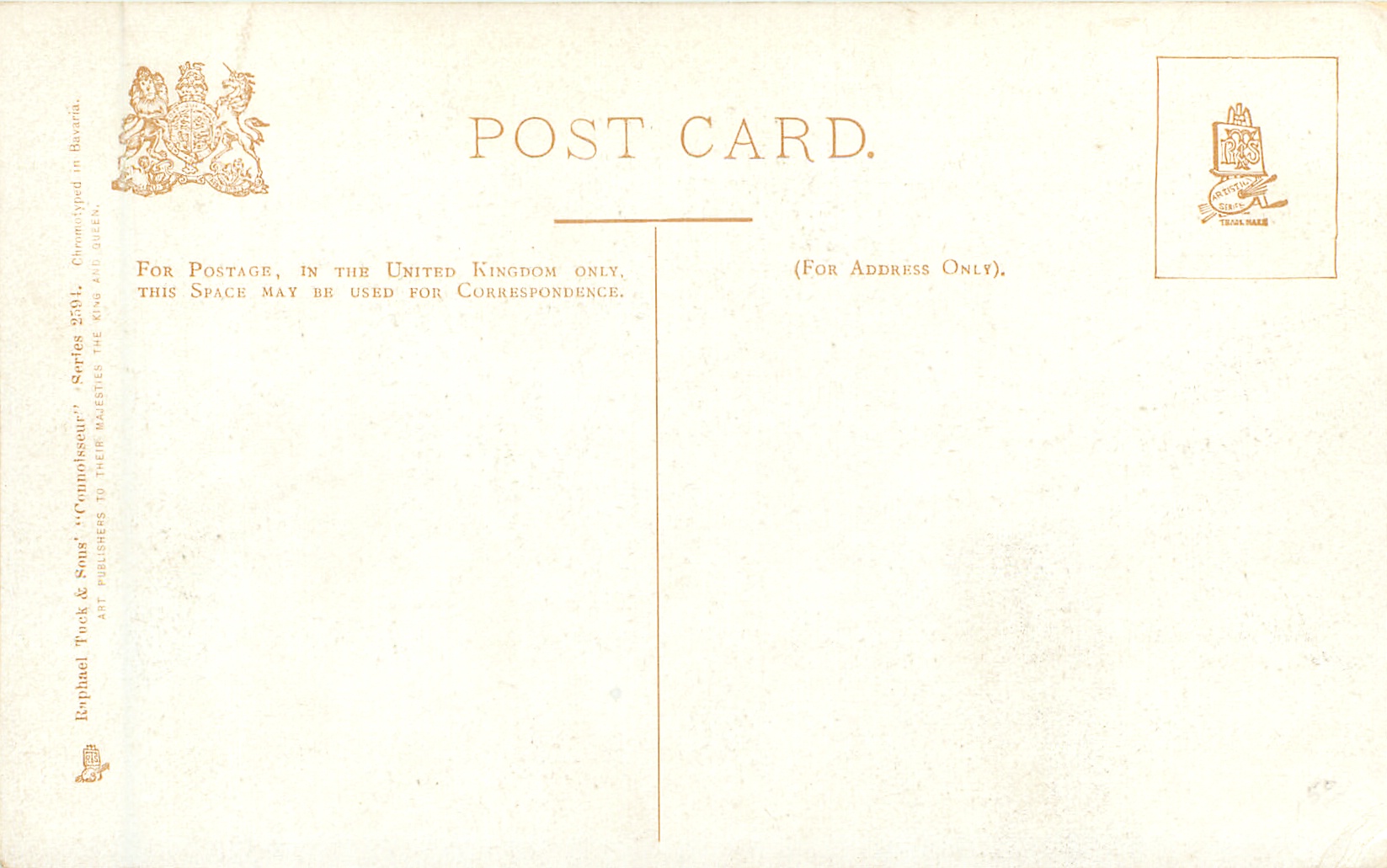 CONNOISSEUR, same images French backs SERIE 394, CHROMOTYPED IN BAVARIA, listed as TURNERESQUE SERIES in 1904 POSTCARD Catalogue
