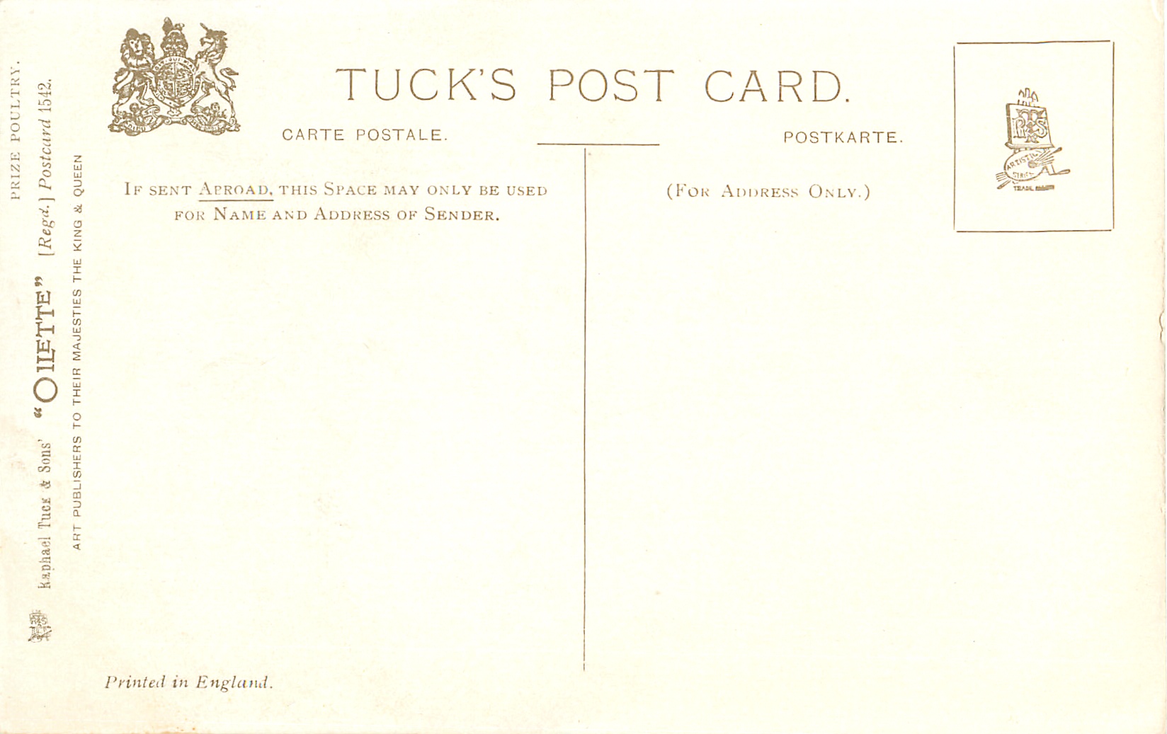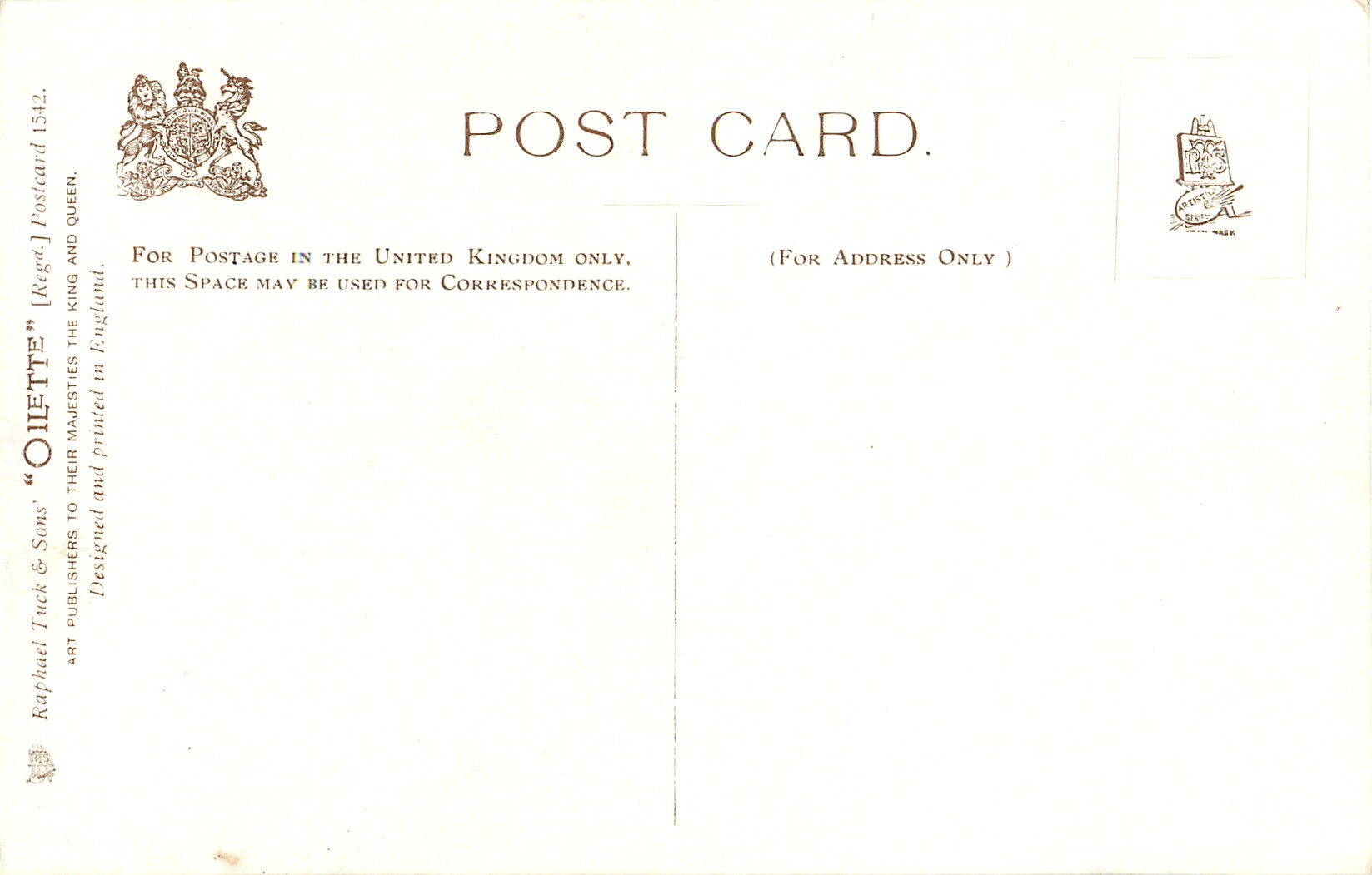 OILETTE, 3 backs, PRINTED IN ENGLAND or DESIGNED AND PRINTED IN ENGLAND, come glittered, listed in 1904 & 1908/1909 & 1911/1912 &1912/1913 &1913/1914 POSTCARD Catalogues