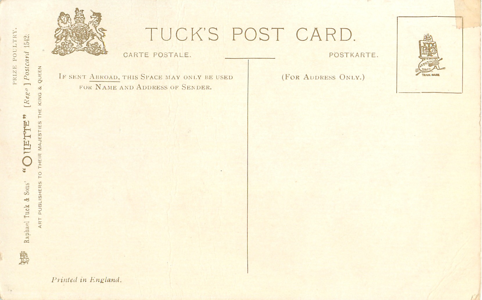 OILETTE, 3 backs, PRINTED IN ENGLAND or DESIGNED AND PRINTED IN ENGLAND, come glittered, listed in 1904 & 1908/1909 & 1911/1912 &1912/1913 &1913/1914 POSTCARD Catalogues