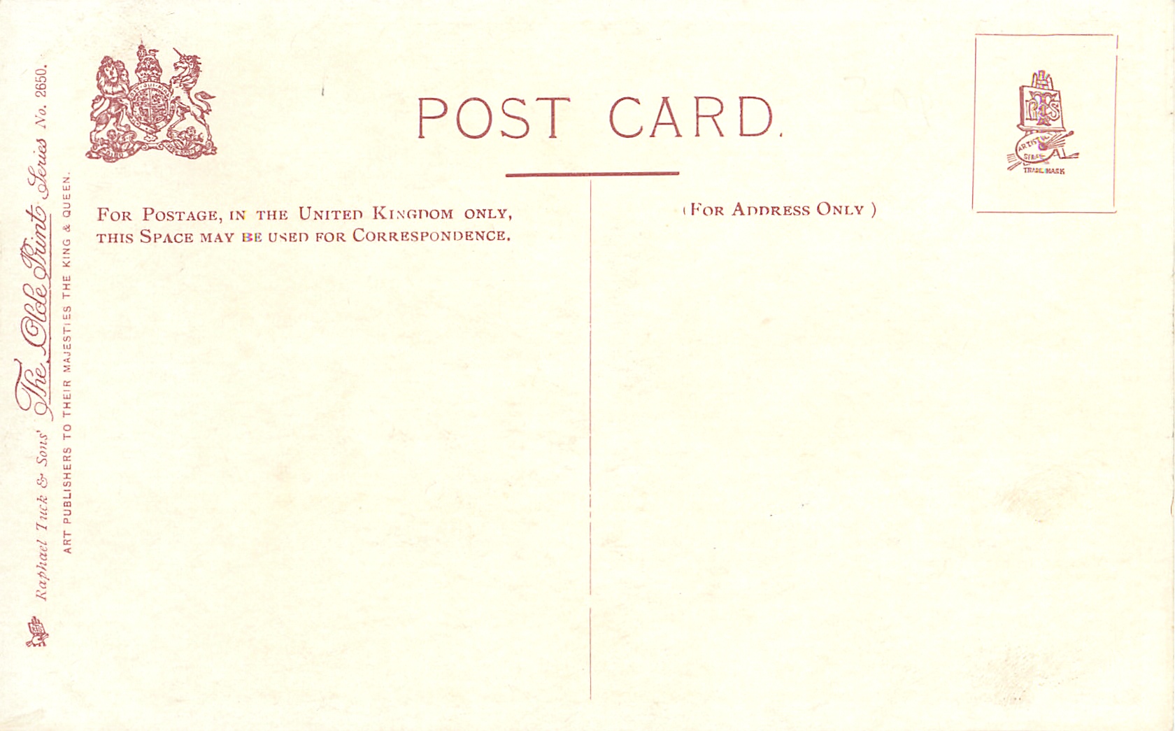 come PRINTED IN ENGLAND, PROOF EDITION (advertised.1902/1903), listed in 1904 & 1908/1909 & 1911/1912 Postcard Catalogues