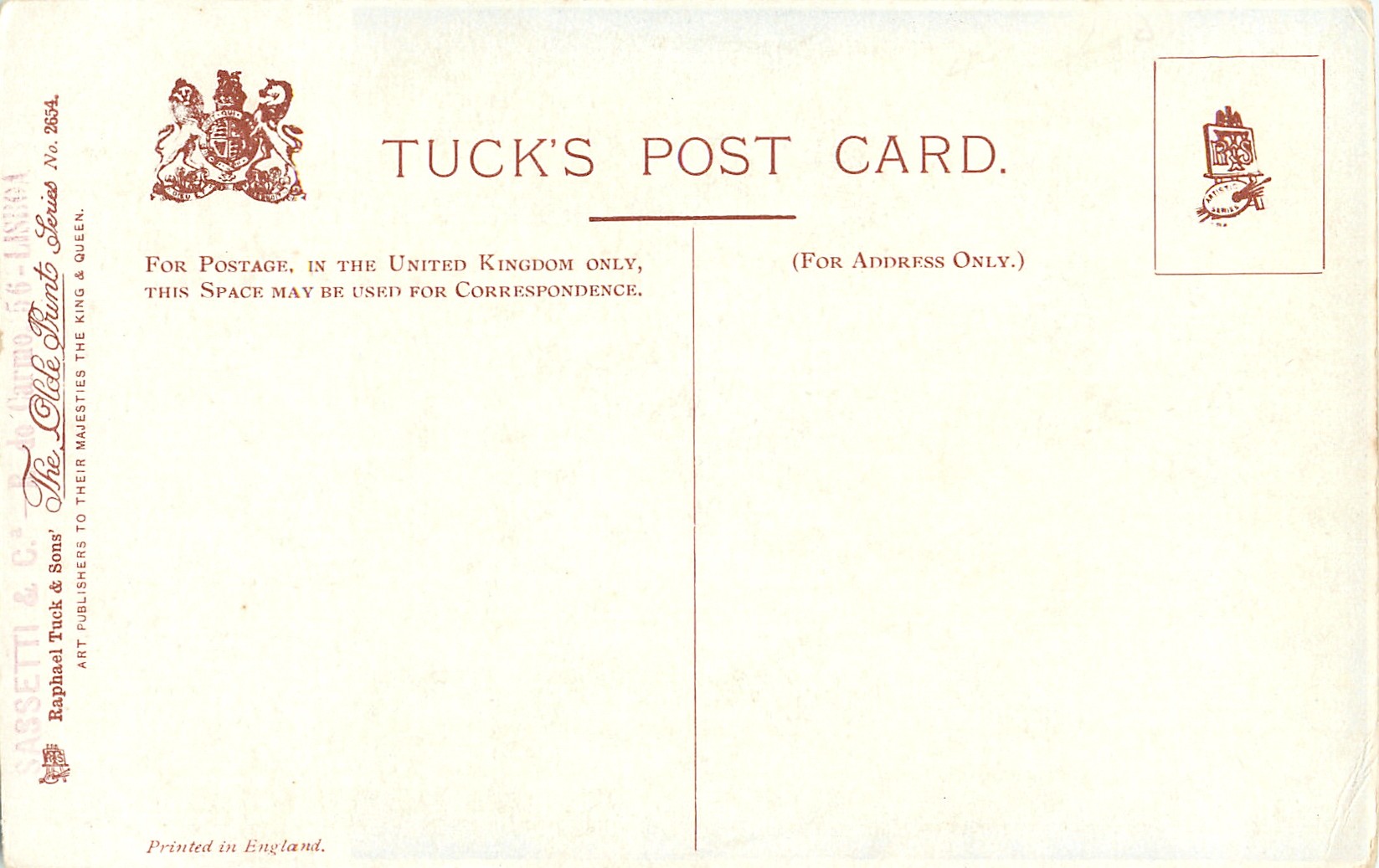 PRINTED IN ENGLAND, listed in 1908/1909 & 1911/1912 Postcard 1912 Catalogue