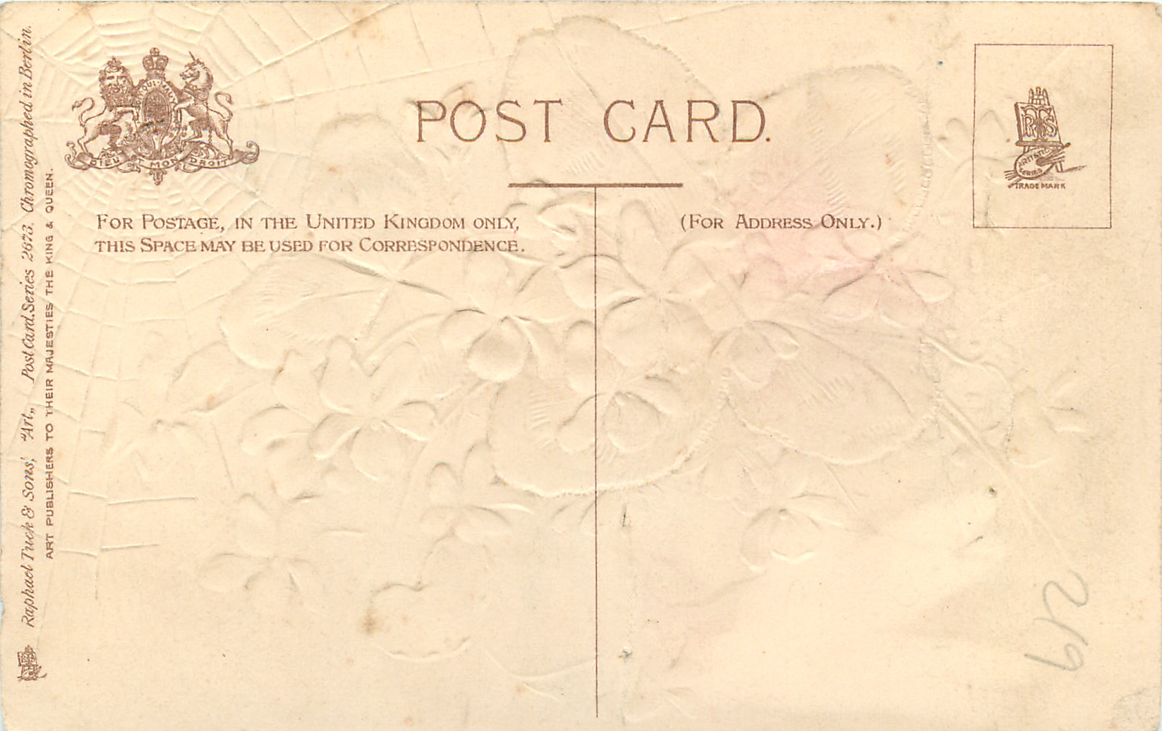 ART, CHROMOGRAPHED IN BERLIN, embossed, listed in 1908/1909 Postcard Catalogue