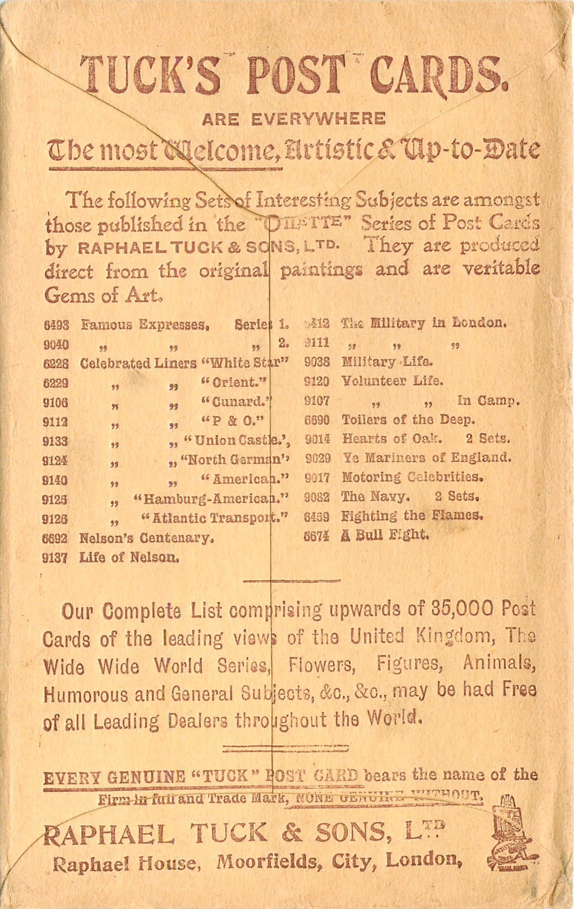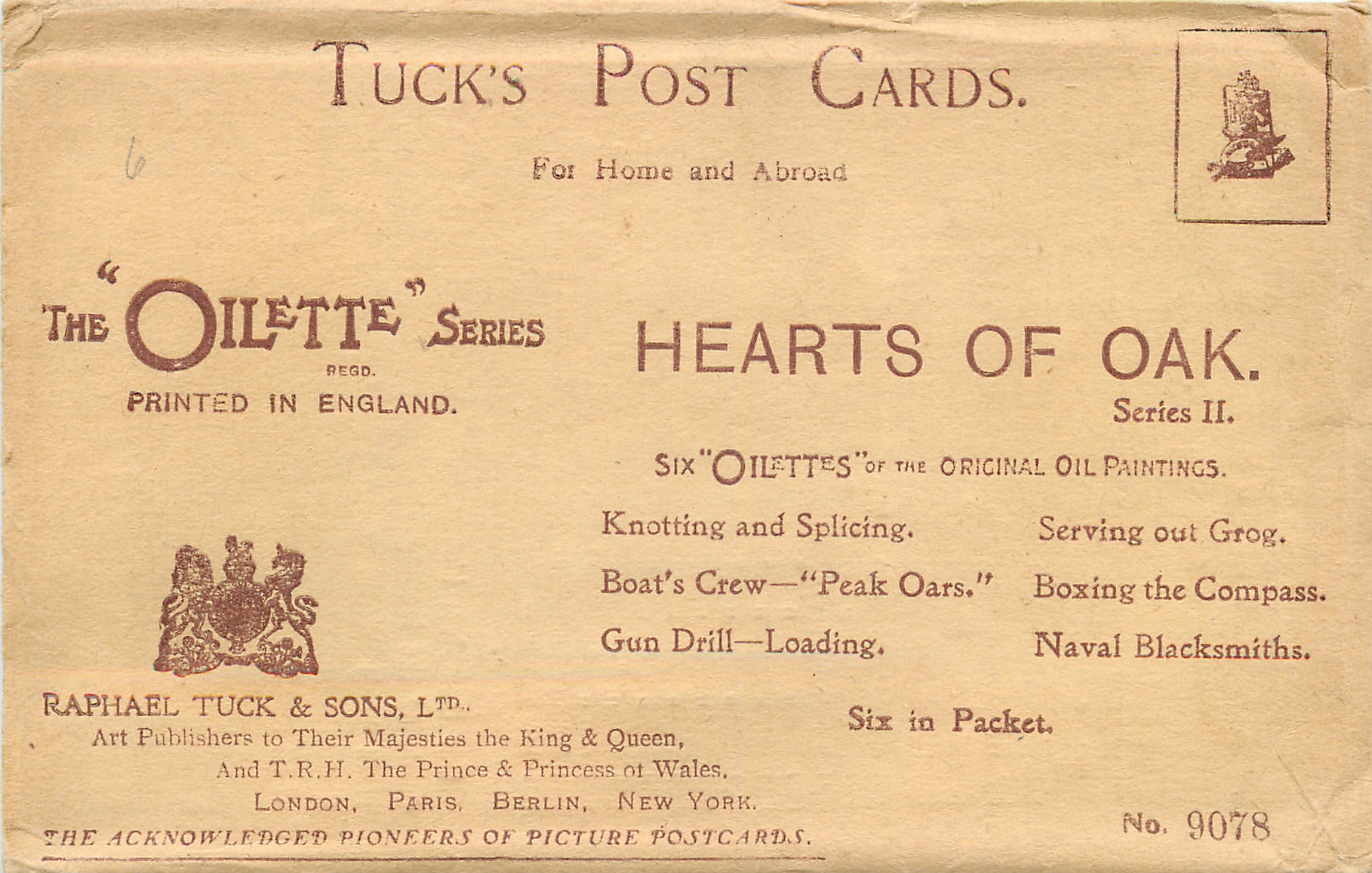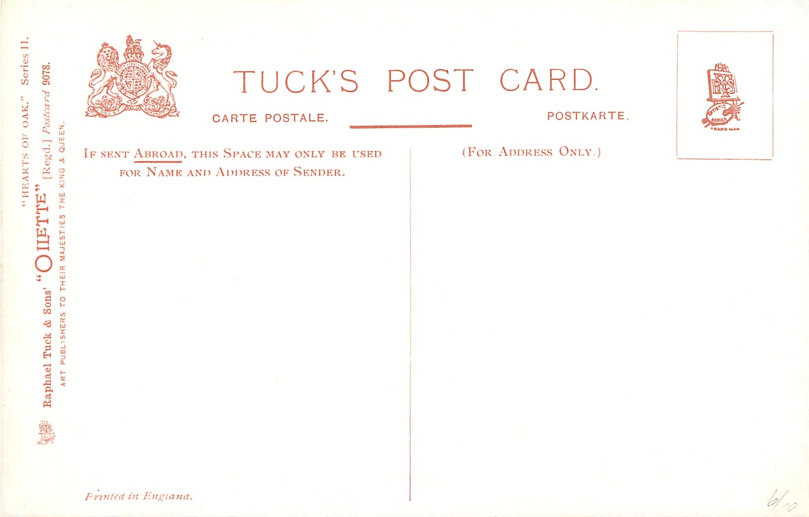 OILETTE, PRINTED IN ENGLAND, listed in 1908/1909(USA) & 1911/1912 & 1913/1914 Postcard Catalogues, listed in TUCK'S TRAVELOGUES (USA?1905)