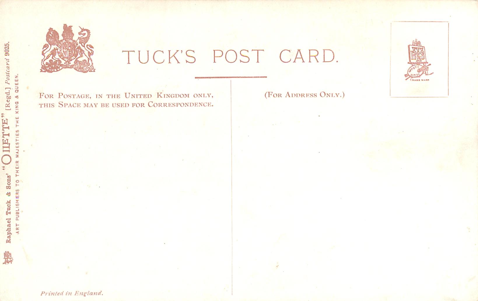 OILETTE, PRINTED IN ENGLAND, AFTER THE BLACK & WHITE DRAWING BY FRANK REYNOLDS., listed in 1908/1909 &1911/1912 Postcard Catalogue