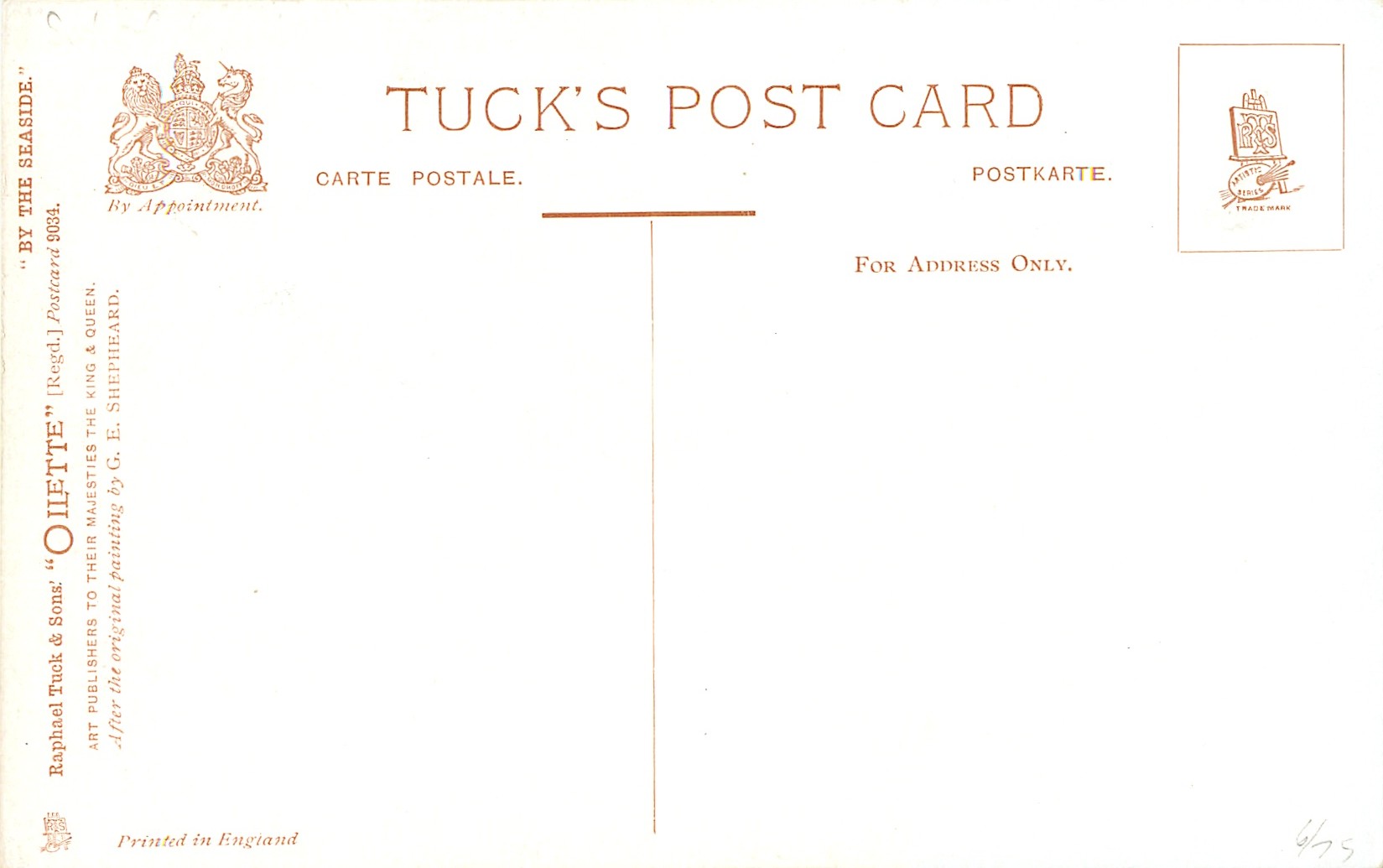 OILETTE, PRINTED IN ENGLAND, listed in 1908/1909(USA) & 1911/1912 & 1913/1914 Postcard Catalogues
