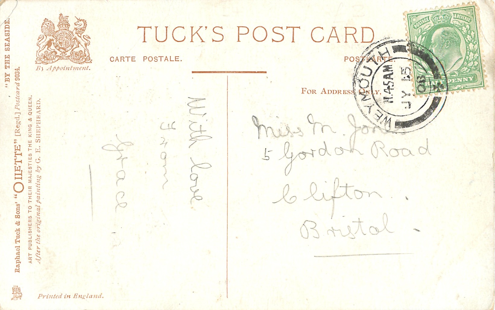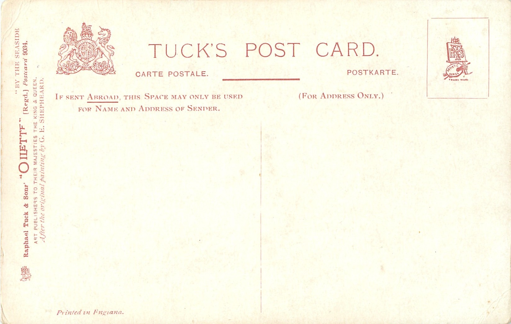 OILETTE, PRINTED IN ENGLAND, listed in 1908/1909(USA) & 1911/1912 & 1913/1914 Postcard Catalogues