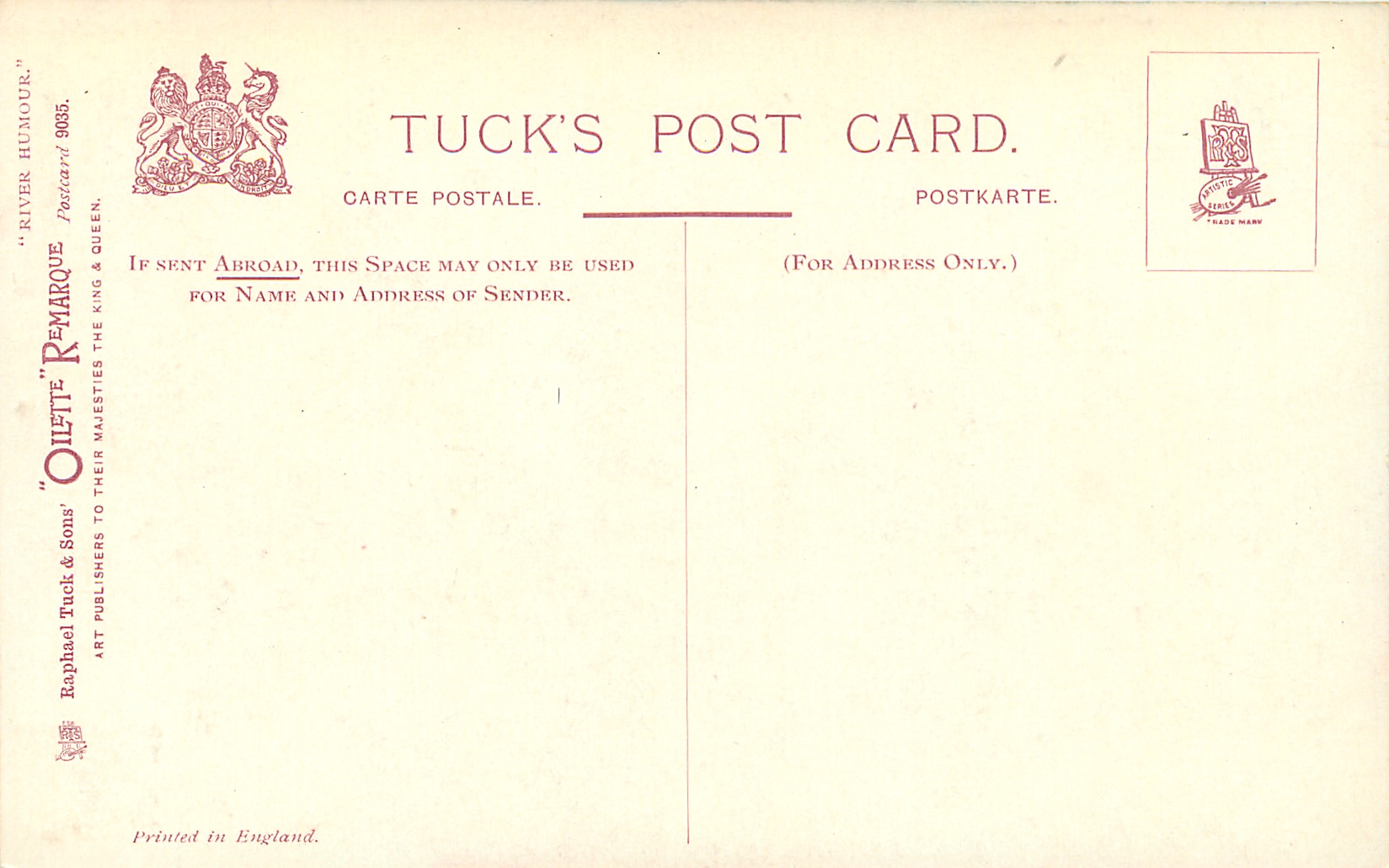 OILETTE REMARQUE, PRINTED IN ENGLAND, 2 backs, listed in 1908/1909 & 1911/1912 Postcard Catalogue