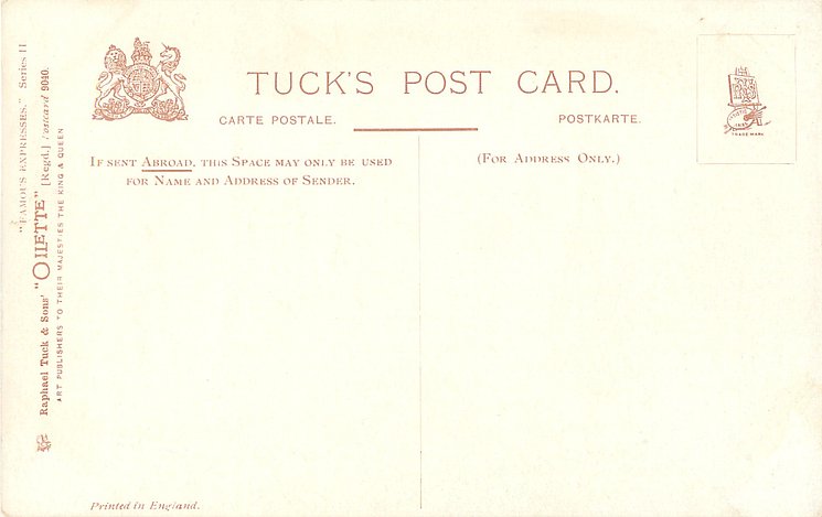 OILETTE, PRINTED IN ENGLAND, listed in 1908/1909(USA) postcard catalogue