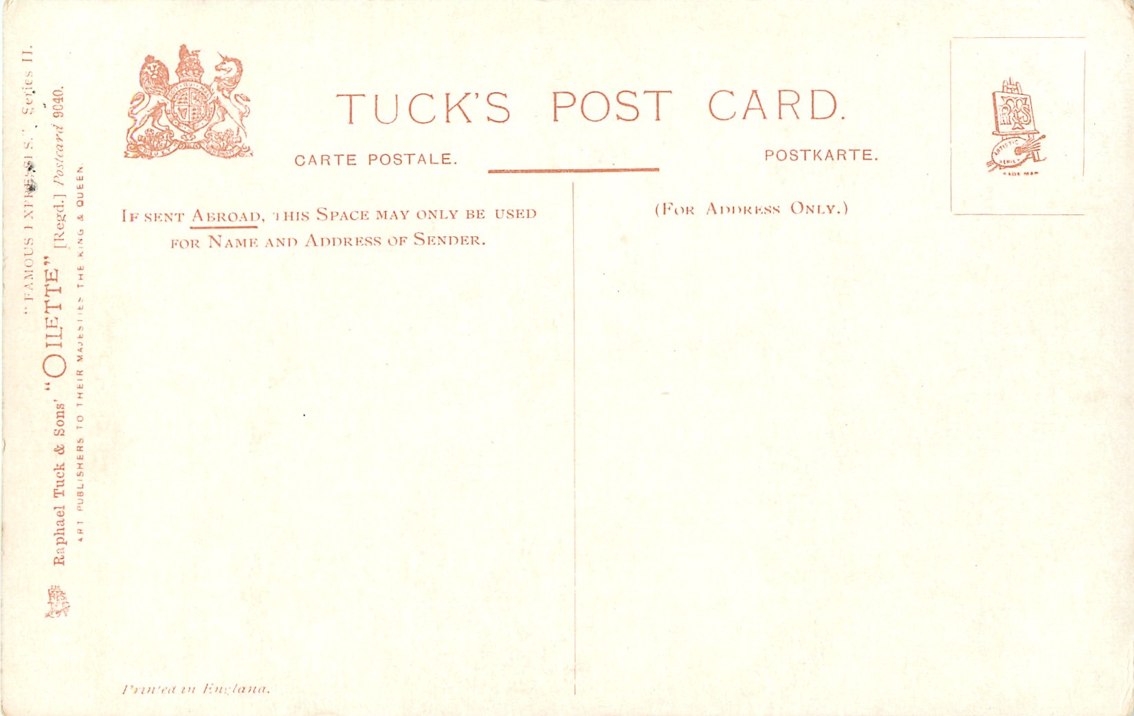 OILETTE, PRINTED IN ENGLAND, listed in 1908/1909(USA) postcard catalogue