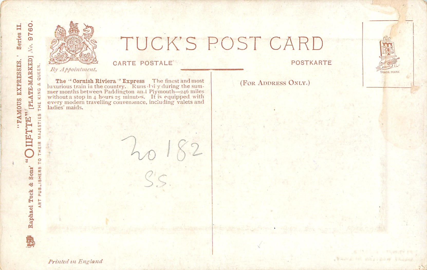 OILETTE, PLATEMARKED, PRINTED IN ENGLAND, listed in 1911/1912 & 1913/1914 Postcard Catalogues