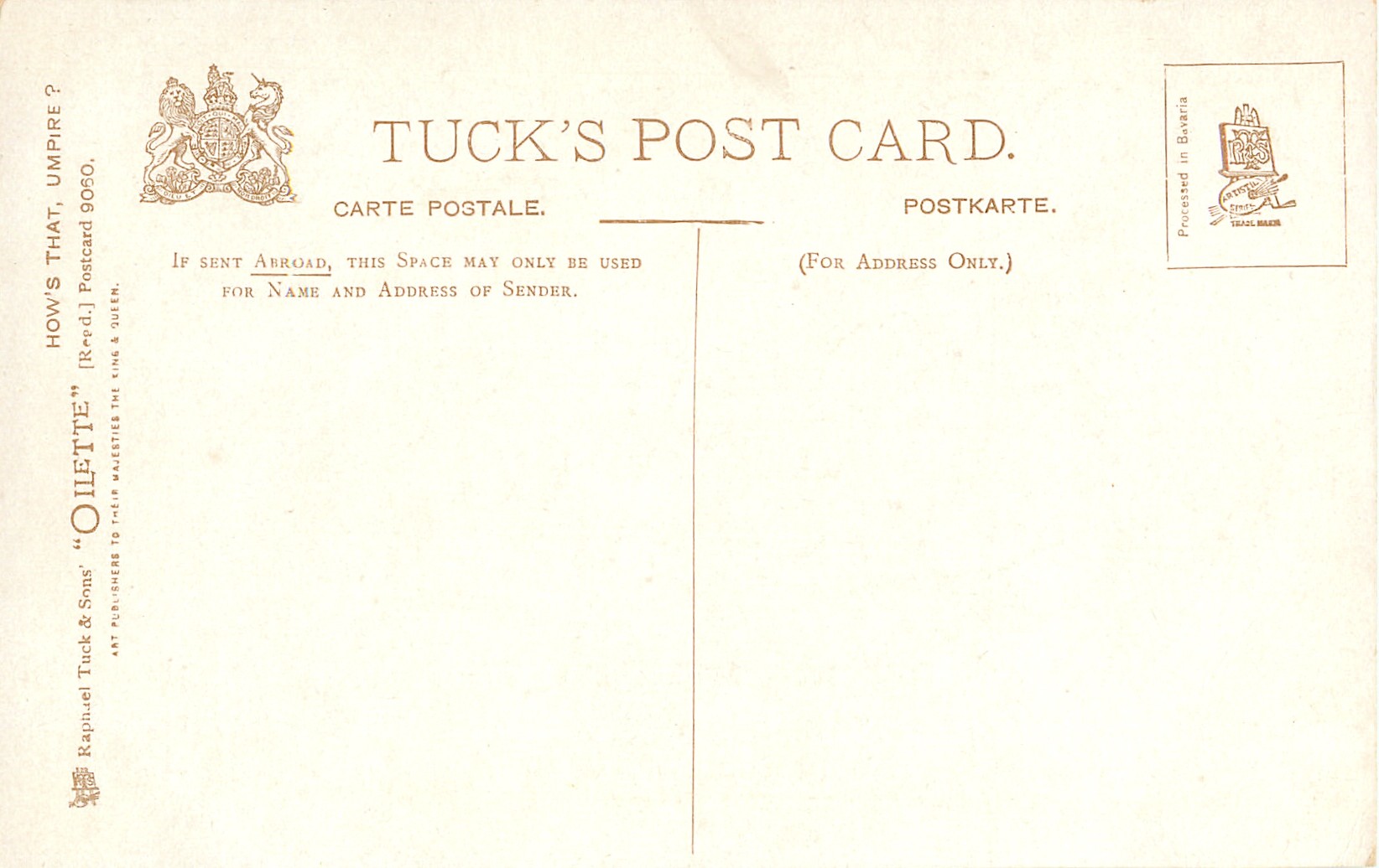 OILETTE, PROCESSED IN BAVARIA (in stamp box), listed in 1908/1909 & 1911/1912 Postcard Catalogue