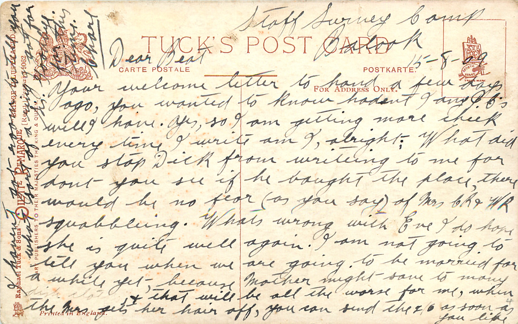 2 backs, OILETTE REMARQUE, PRINTED IN ENGLAND, listed in 1908/1909 &1911/1912 Postcard Catalogue