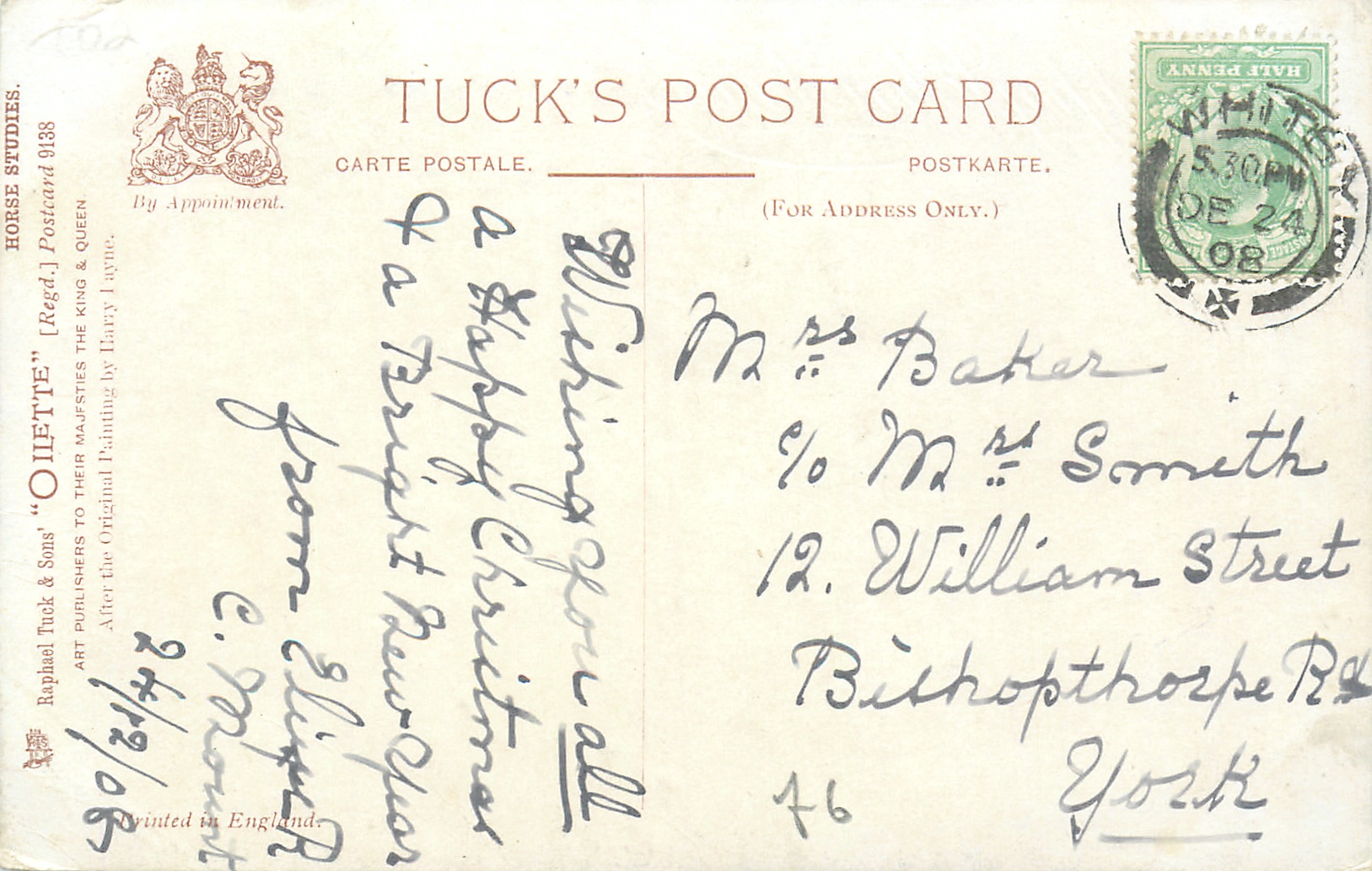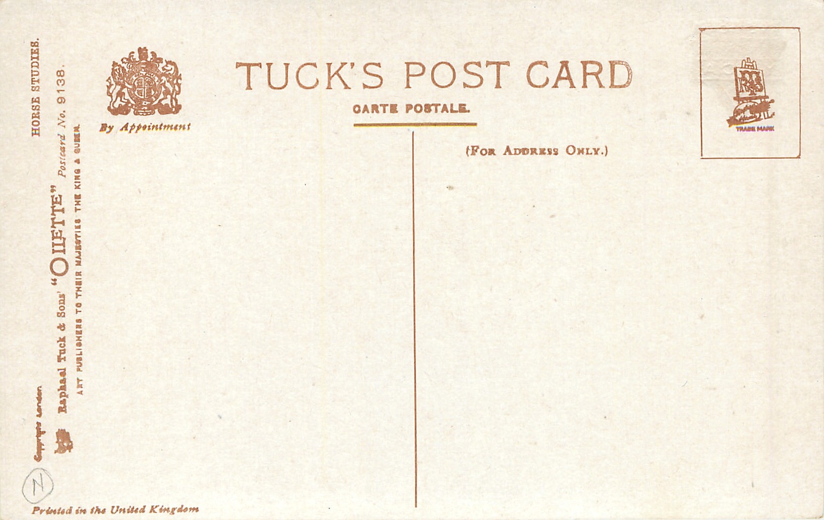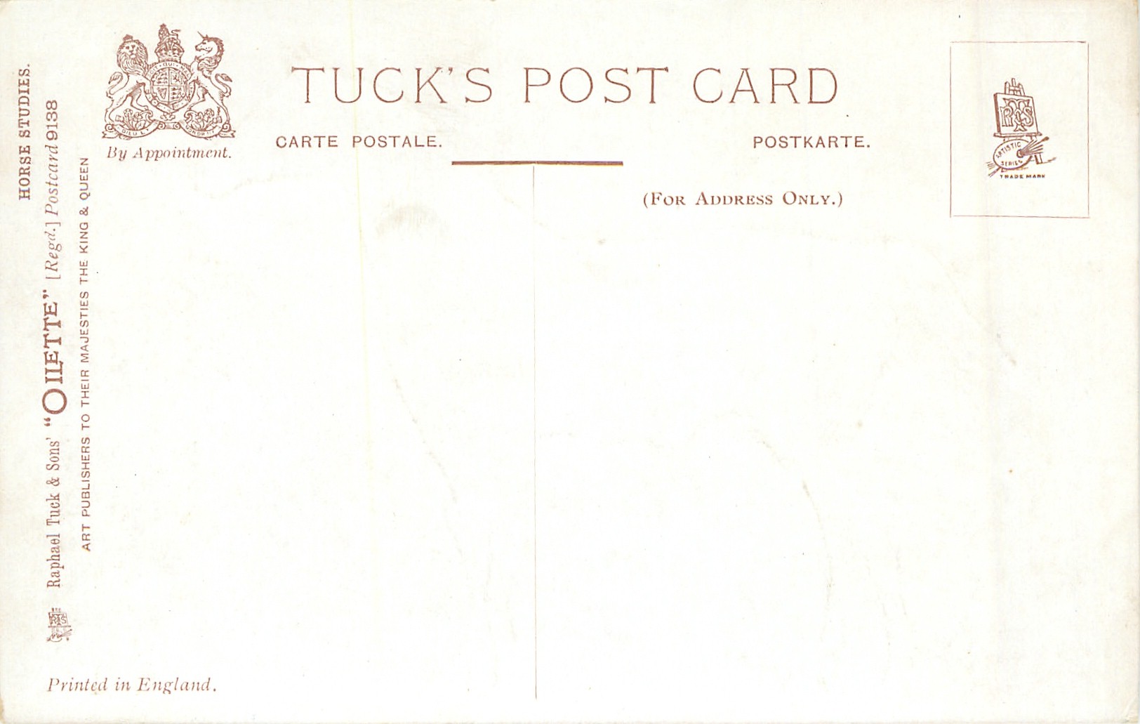 OILETTE, PRINTED IN ENGLAND, COPYRIGHT LONDON, come oilfacsim but not so trade named, come opt.AMEICAN Y.M.C.A., AFTER THE ORIGINAL PAINTING BY HARRY PAYNE, PRINTED IN THE UNITED KINGDOM, listed in1911/1912 & 1912/1913 & 1913/1914 & 1926/1927 & 1930 POSTCARD Catalogues
