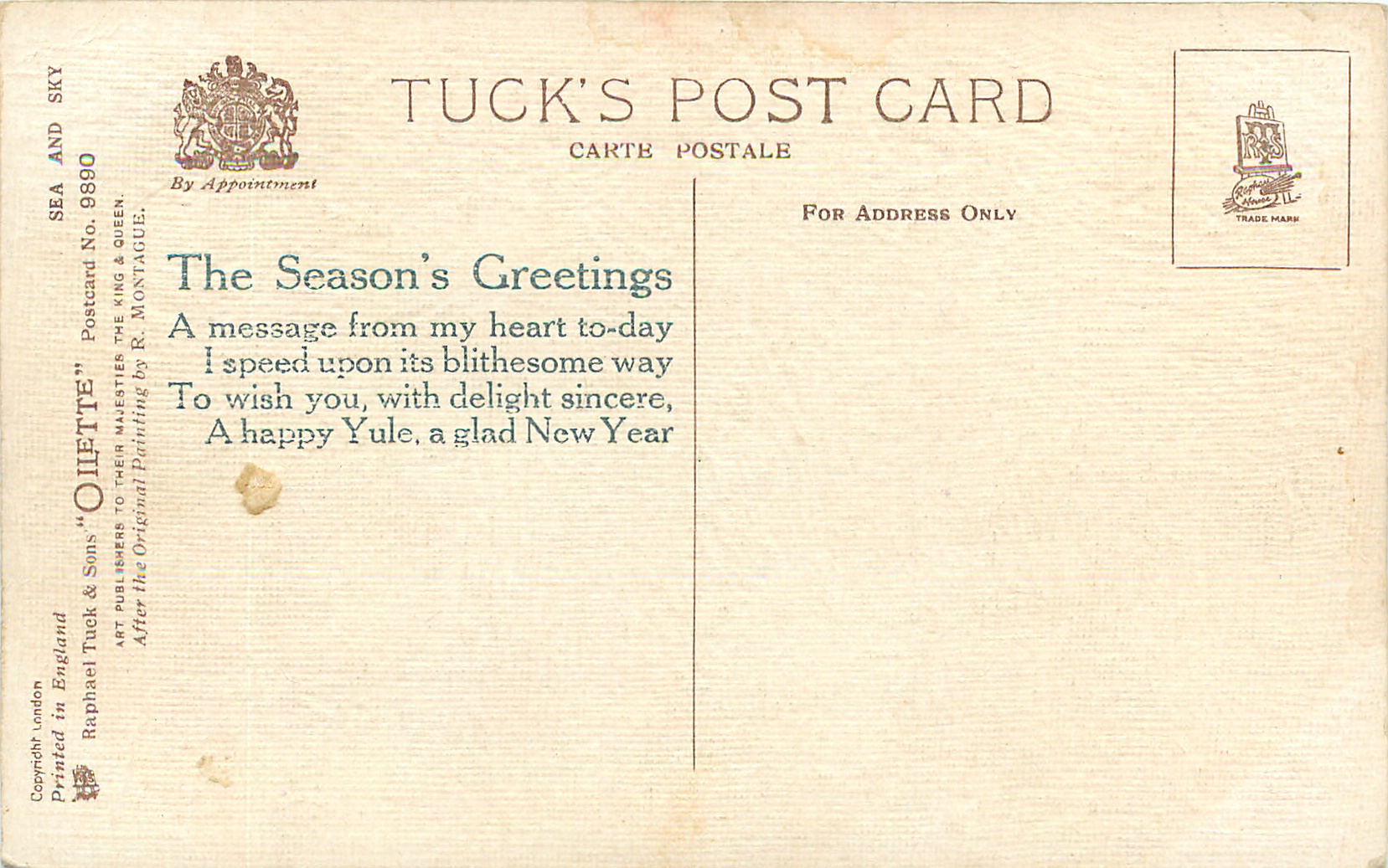OILETTE, comes Oilfacsim but not so trade-named. PRINTED IN ENGLAND or PRINTED IN UNITED KINGDOM with or w/o COPYRIGHT LONDON, listed in1930 POSTCARD Catalogue
