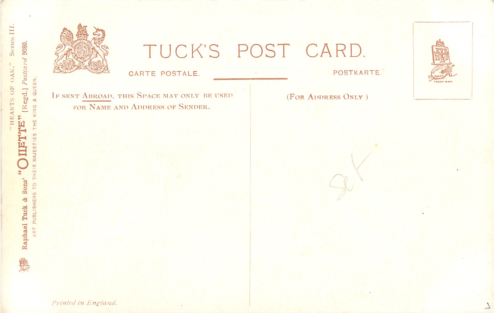OILETTE, PRINTED IN ENGLAND, listed in 1908/1909 & 1911/1912 & 1913/1914 Postcard Catalogues