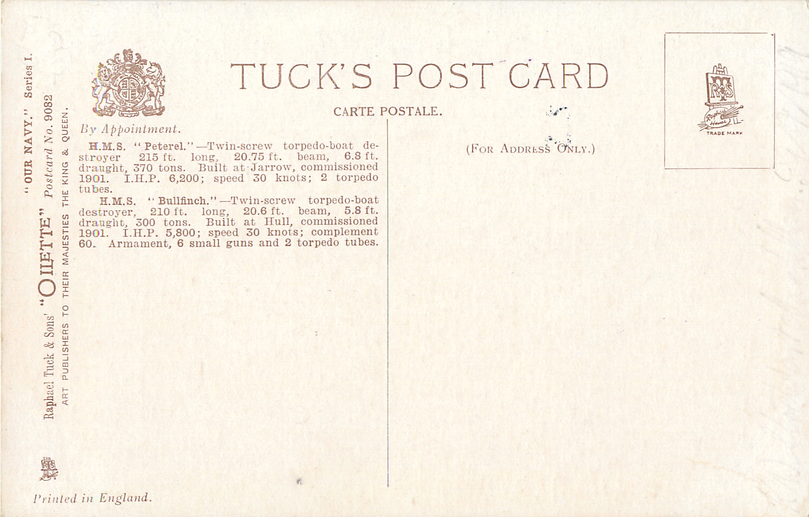 TORPEDO BOAT DESTROYERS PETEREL AND BULLFINCH