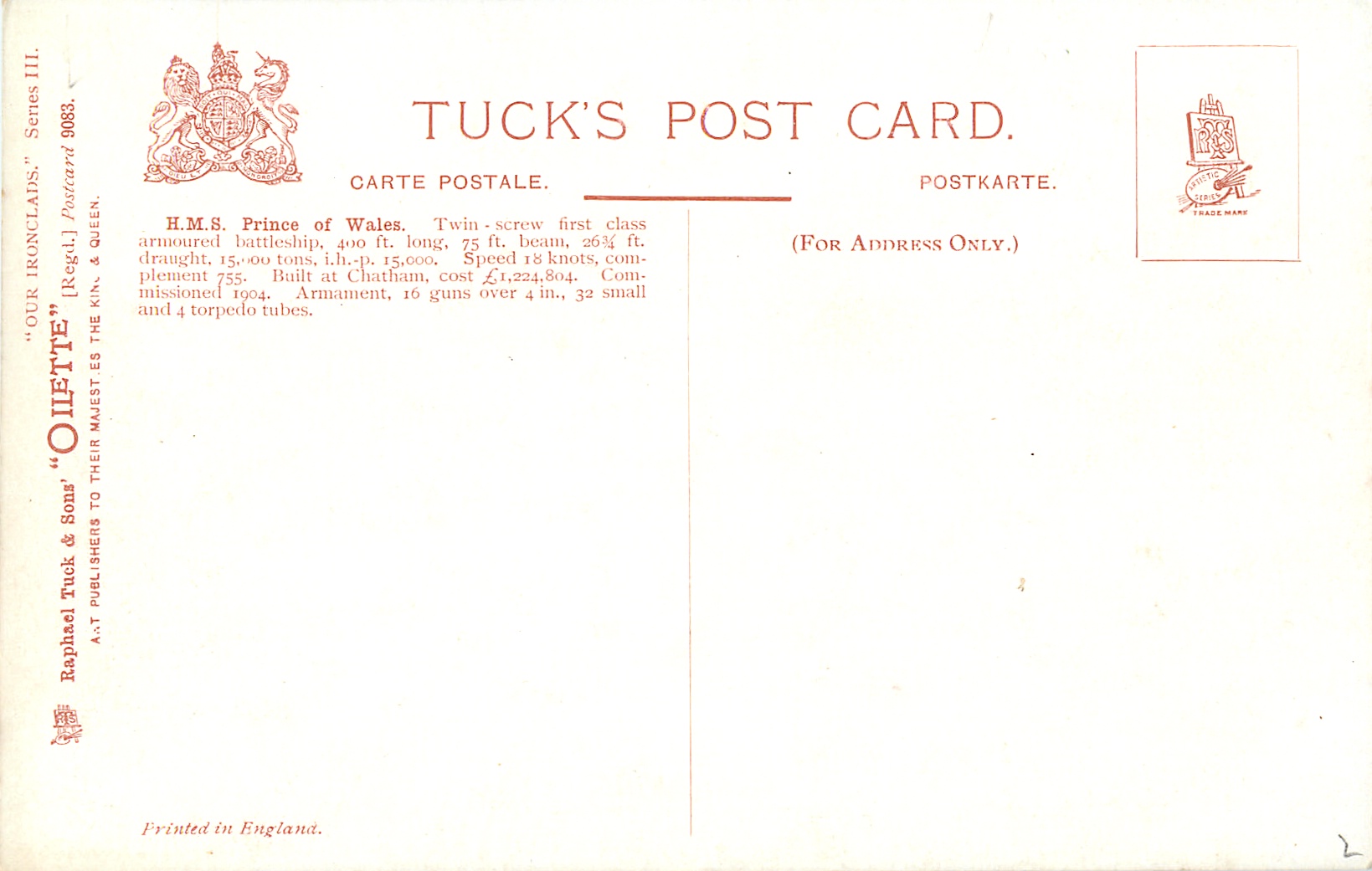 OILETTE, PRINTED IN ENGLAND, listed in 1908/1909 Catalogue