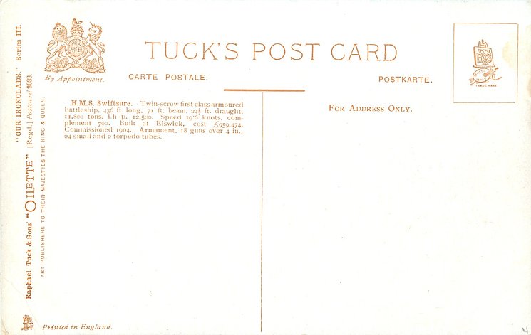 OILETTE, PRINTED IN ENGLAND, listed in 1908/1909 Catalogue