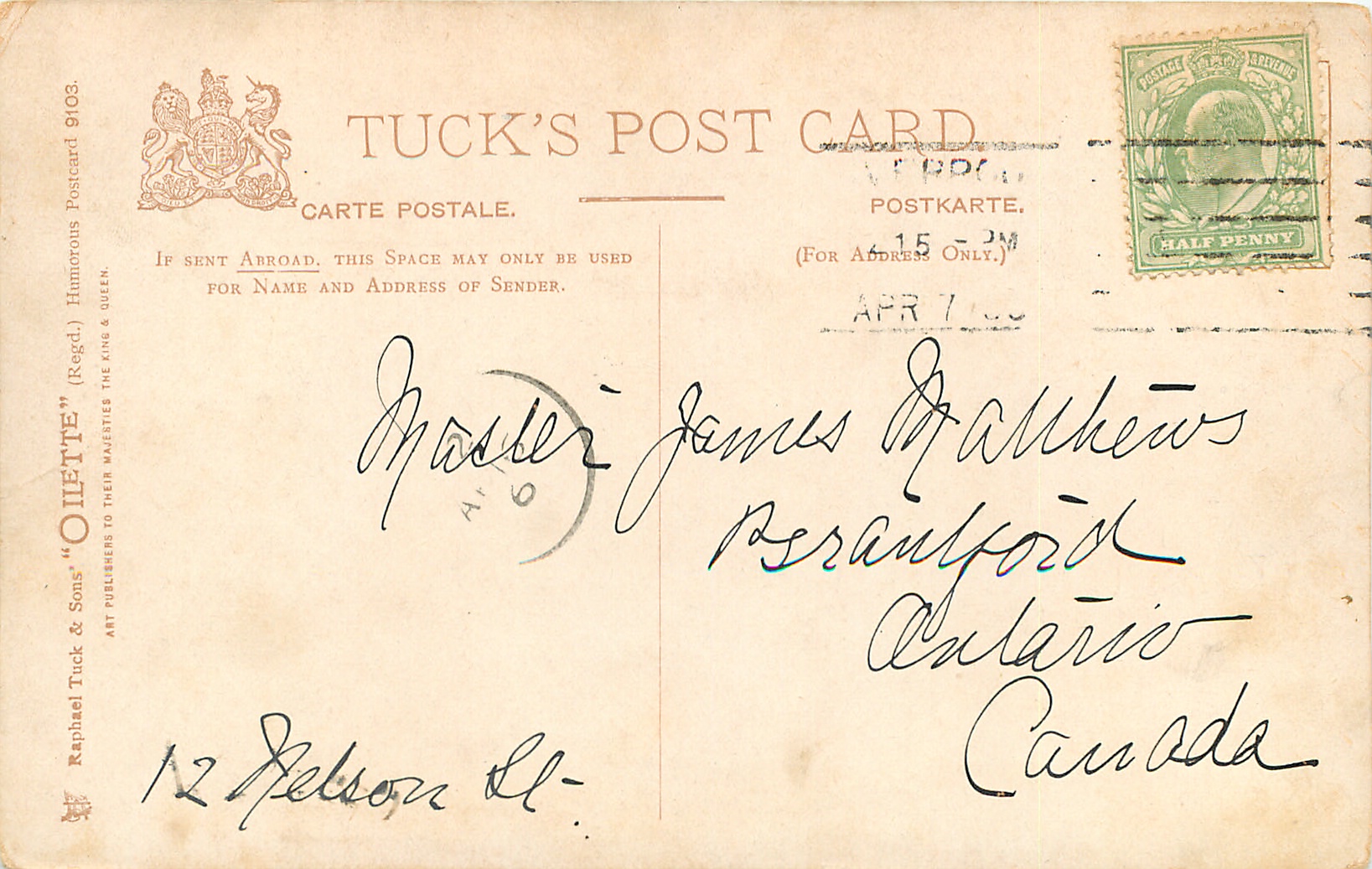 OILETTE, PRINTED IN BAVARIA (in stamp box), LITTLE MARY is the title of 1904 play by Barrie & refers to the stomach