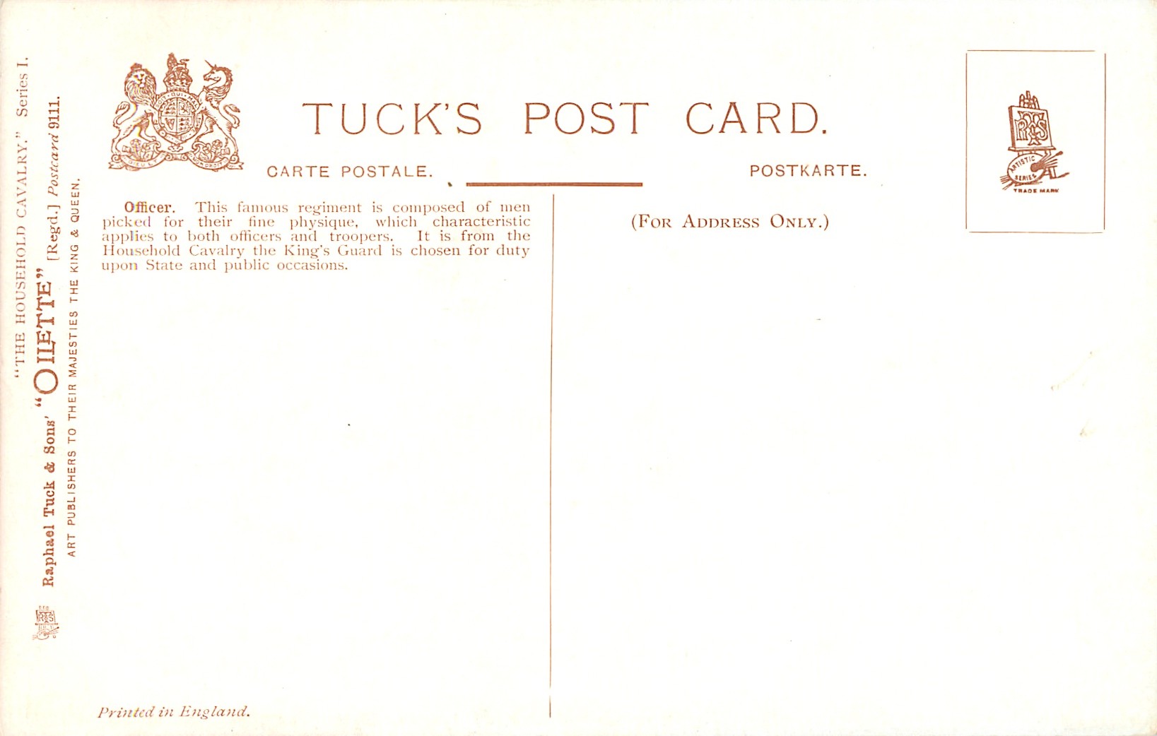 OILETTE, PRINTED IN ENGLAND, listed in 1908/1909(USA) postcard catalogue