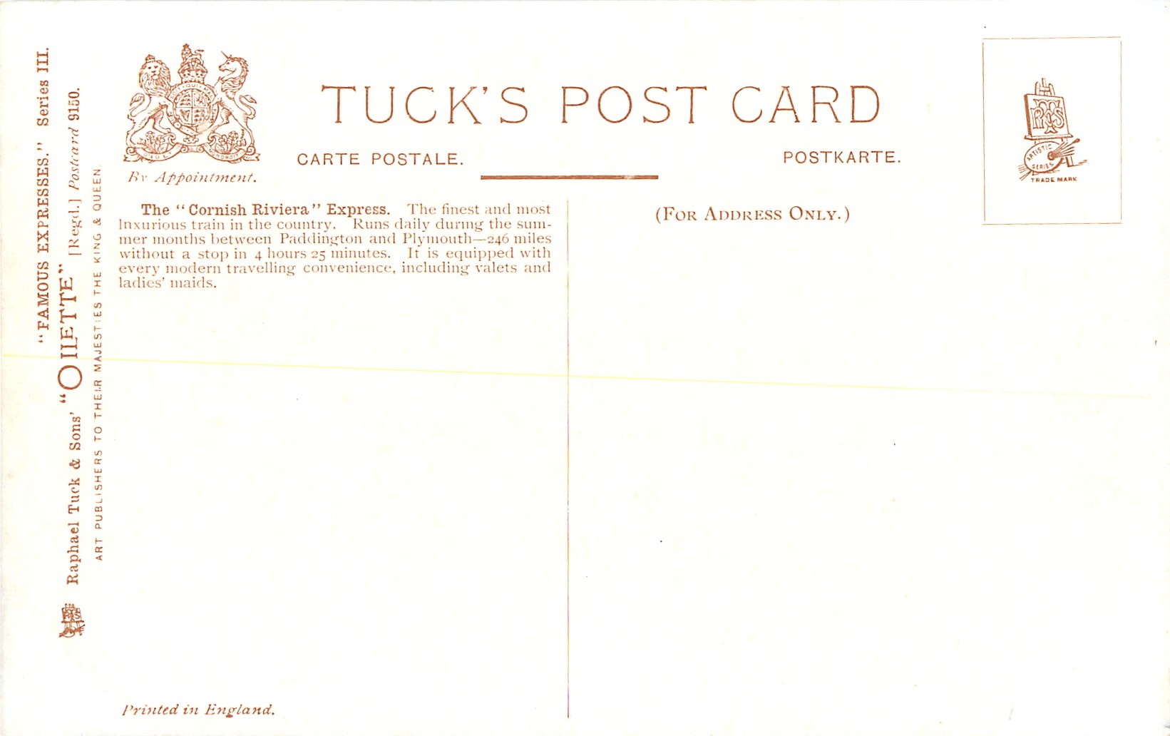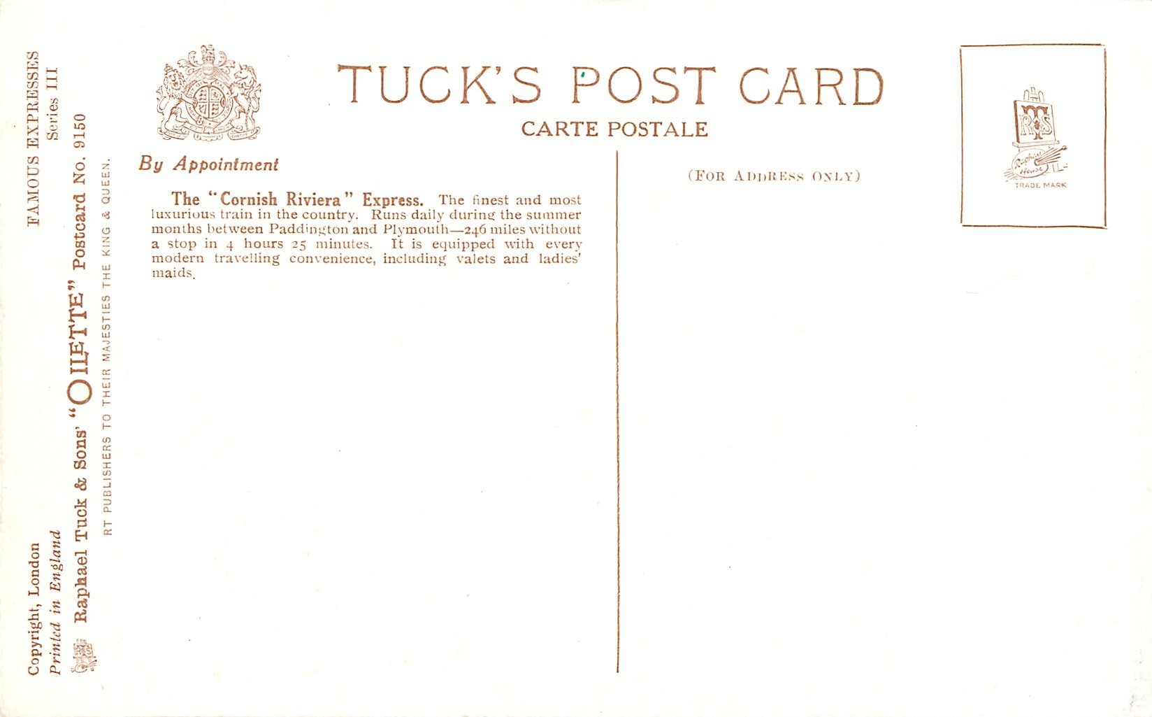 OILETTE, PRINTED IN ENGLAND, with or w/o COPYRIGHT LONDON, come as LONDON COUNTY COUNCIL REWARD CARD, unnumbered, famous expresses